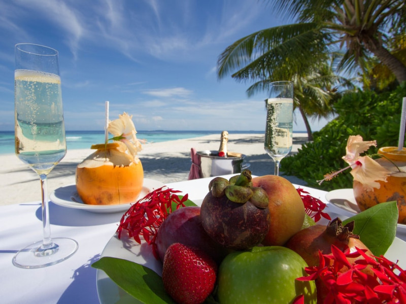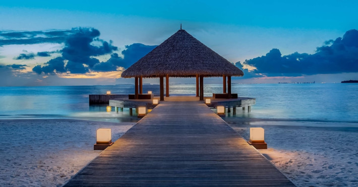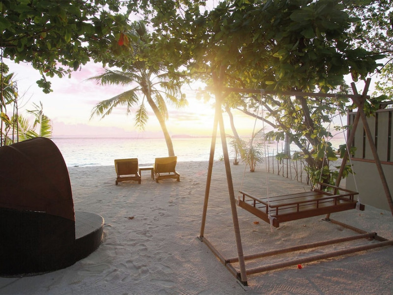 Dhawa Ihuru, a beachfront resort on Ihuru Island in North Malé Atoll, offers 45 air-conditioned villas, each accommodating up to four guests (two adults and two children or three adults and one child). Villas feature private timber patios, in-room WiFi, dining and seating areas, ocean views, and Maldivian swings; some include open-air jet pools. Enjoy complimentary roundtrip airport shuttle service (on request), a full-service spa with massages and body treatments, and complimentary non-motorized water sports equipment rental. A wide array of activities are available, including snorkeling, diving courses, dolphin cruises, fishing excursions, and cooking classes. Guests have access to Banyan Tree Vabbinfaru's facilities (chargeable, subject to availability) via complimentary shuttle. Dining options include Riveli (fusion cuisine), 24-hour room service, a bar/lounge, and a beach bar. Buffet breakfast is available daily (fee applies). Honeymooners receive special amenities (wine, fruit platter, cake, romantic turndown service; additional benefits for stays of five nights or more; marriage certificate required). Nearby beaches include Thulhagiri, Full Moon, Paradise Island, Gili Lankanfushi, Dhonveli, Kurumba, Hulhumale, Villingili Public, and Rasfannu. Velana International Airport (MLE) is 9.9 km away. All-inclusive rates include meals and beverages at onsite dining establishments (some exclusions apply). The Dhawa Ihuru Maldives is a Beach Resort, Honeymoon, Tourist hotel. The nightlife/restaurants are located in the hotel.