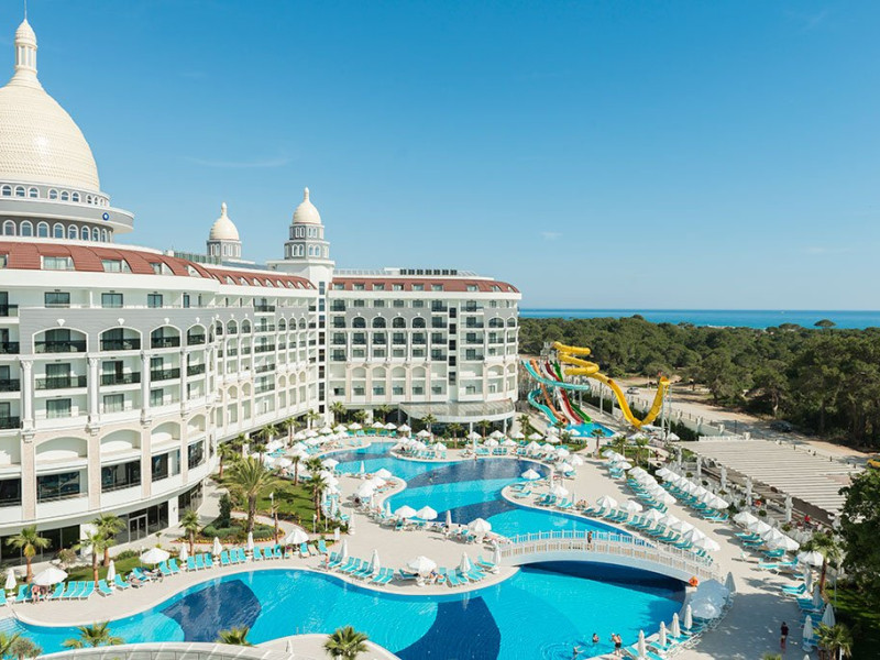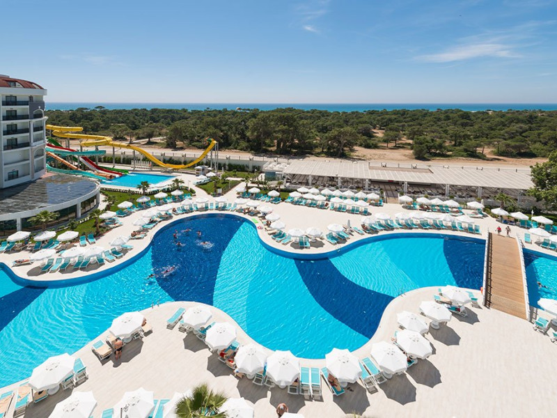 Facilitati hotel: Hotelul ofera oaspetilor sai urmatoarele facilitati: restaurant principal, 2 restaurante a la carte, 2 restaurante snack, patiserie, baruri, piscina exterioara principala, piscina pentru copii, piscina cu 6 tobogane, piscina interioara, internet wi-fi, programe de animatie, muzica live, centru fitness, tenis de masa, darts, aerobic, volei pe plaja, centru spa si welness, sauna, baie turceasca. Servicii cu plata: bauturi de import, baturi premium, fresh-uri din fructe, seif, halat de baie, room service, servicii medicale, servicii de curatatorie, sala de jocuri, biliard, sporturi acvatice, masaj si alte tratamente in centrul spa, mini club 4-12 ani, mini disco.