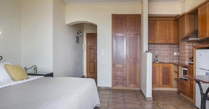 Decorate in nuante de albastru si alb, studiourile si apartamentele Diana ofera o vedere panoramica unica la mare si la munte, cu o piscina in aer liber. Toate studiourile sunt dotate cu aer conditionat si au bucatarie complet utilata, TV, Wi-Fi gratuit, canale prin satelit si balcon cu vedere la mare si la peisajul rural din jur.
