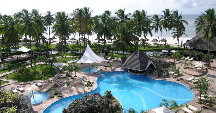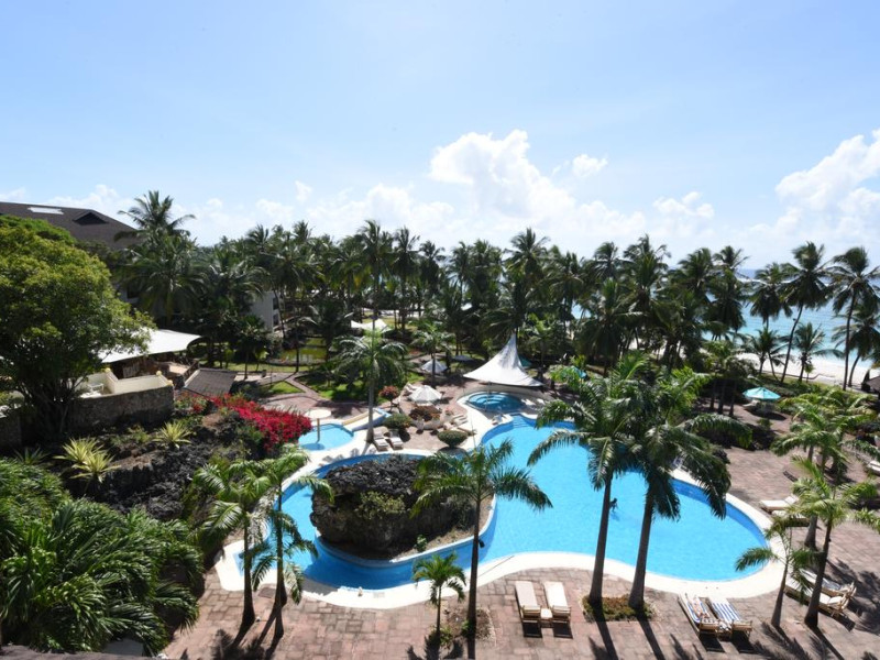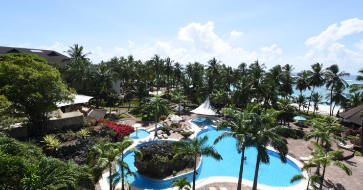 Diani Reef Beach Resort and Spa se afla pe plaja Diani Beach, la aproximativ 40 km de aeroportul international Moi din Mombasa.