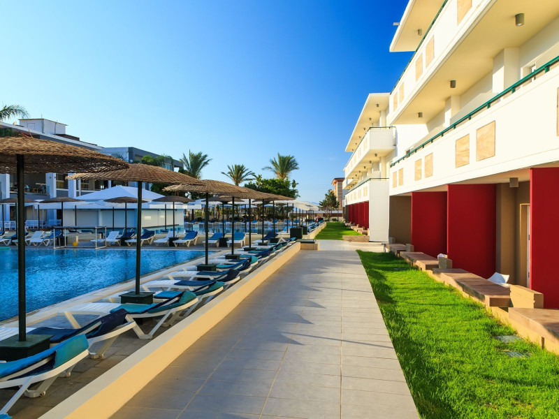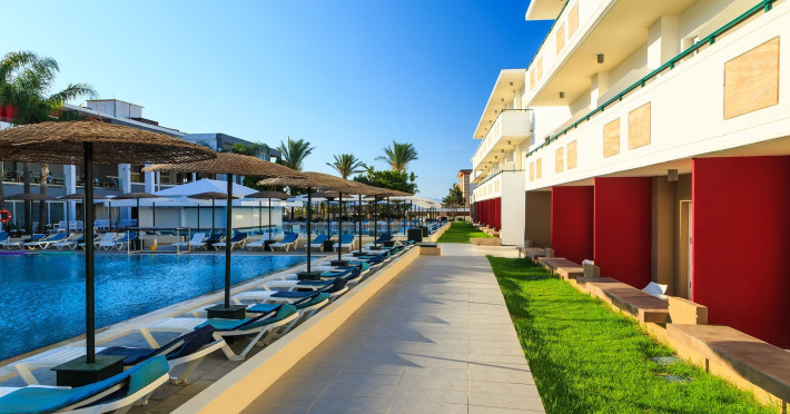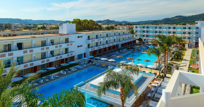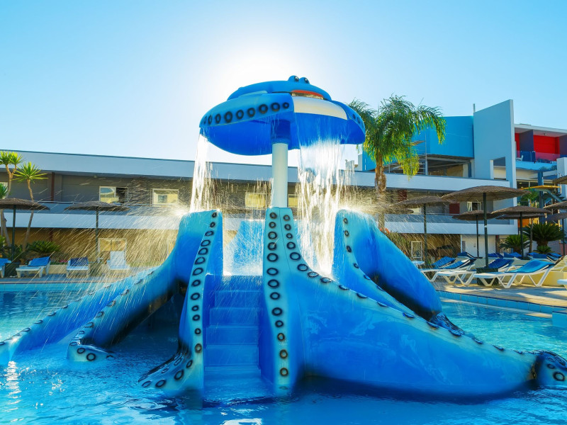 Dodeca Sea Resort is a 5 star Hotel, located on the beach of Ialyssos village, 8 km from the town of Rhodes and 5 km from the International Airport.Suitable for couples and specializes in family holidays, has 2 outdoor swimming pools for adults, an outdoor swimming pool for children, 3 waterslides, a spa- wellness center and a gym.All rooms are 38 to 42 m2, have a balcony or a terrace with garden, pool or sea view. They include satellite TV, individually-controlled air conditioning, safety deposit box and hairdryer.In the main restaurant guests may have American breakfast, lunch and dinner on buffet style, a variety of theme nights during the week, a midnight soup, while children’s menu is also available daily. The hotel has an A La Carte restaurant and a Snack Bar where traditional Greek food is being served and 4 on-site bars including a swim-up Pool bar and beach bar.There is an Animation Programme 6 days per week for adults and kids with day and night activities organized by our professional and multilingual animators. Mini-market, 24 hours reception, sunbeds and umbrellas, free Wi-Fi, sports facilities and free parking can be found on site.
