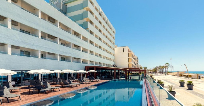 Descriere hotel: Pe langa peisajele panoramice asupra Oceanului Atlantic, hotelul Dom Jose este situat direct pe plaja Quarteira si ofera camere moderne cu televizoare cu ecran plat. De asemenea, dispune si de o piscina in aer liber. Dotari camere: Hotelul ofera camere moderne si elegante, cu aer conditionat, mobilier din lemn si podele din stejar. Toate camerele au televizor cu ecran plat si canale prin satelit, minibar, facilitati pentru ceai, seif si o baie privata cu uscator de par si produse de toaleta gratuite. Facilitati: Hotelul ofera o zona de plaja privata in timpul sezonului de varf, iar piscina in aer liber are o platforma de lemn dotata cu sezlonguri si umbrele. Campurile de golf Vila Sol si Vale do Lobo Ocean se afla la mai putin de 3km distanta. In plus, hotelul dispune de sali de conferinte, sala fitness, servicii de masaj si un bar. Restaurantul din incinta hotelului este tip bufet , cu o terasa panoramica si ofera preparate locale si internationale. Pe parcursul lunilor de vara, oaspetii se pot bucura de un pranz la gratar pe terasa. Localizare: Dom Jose este localizat la 20 de minute de mers cu masina de Aeroportul International Faro. Cea mai apropiata statie de autobuz se afla la doar 300 de metri de proprietate, iar la 8km este Vale do Lobo. Vilamoura si cazinoul sau se afla la doar 5 minute de mers cu masina. Pagina Web: https://www.domjosebeachhotel.com/en/