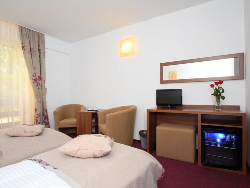 Amplasate in Calimanesti Caciulata, Hotelul Domnitei 3* si Pensiunea Domnitei 4* va ofera cazare in 24 camere duble intr-o atmosfera calda si intima. Hotelul Domnitei 3*, are o capacitate de 30 de locuri (15 camere twin) la care se adauga 18 locuri (9 camere twin) in Pensiunea Domnitei 4*, ambele locatii aflandu-se in aceeasi incinta, intr-un cadru calduros si intim.Va punem la dispozitie spatii de cazare in Calimanesti - Caciulata dotate cu: grup sanitar propriu, uscator de par, televizor LED, minibar, internet, sistem incalzire. Complexul ofera turistilor urmatoarele facilitati:sala de conferinte, piscina exterioara / piscina interioara cu apa calda, tennis de masa, spatiu de joaca pentru copii interior - exterior, mic dejun, seif la receptie, fax, plata prin card, parcare iluminata. Piscina cu apa calda care deserveste Hotelul Domnitei si Pensiunea Domnitei va asteapta in orice anotimp sa va bucurati de posibilitatea de a practica inotul in conditii de confort maxim. Piscina interioara este organizata pentru un acces facil din interior cat si din exterior.Astfel accesul din camerele din incinta este comod si rapid. De asemenea la exterior va mai asteapta o piscina, in care apa are temperatura mediului ambiant si care este potrivita pentru utilizarea in sezonul estival. Am amenajat pentru dumneavoastra si zona de saune unde puteti beneficia de relaxarea oferita de: sauna finlandeza, sauna uscata si de sauna cu infrarosii. De asemenea salina este pregatita sa-si intampine oaspetii pentru o cura cu aerosoli salini, benefici pentru intretinerea aparatului respirator sau pentru tratarea anumitor afectiuni respiratorii.