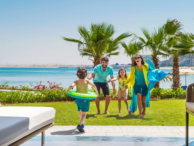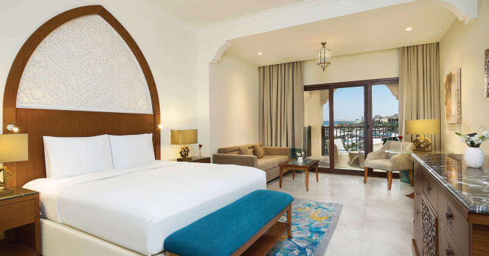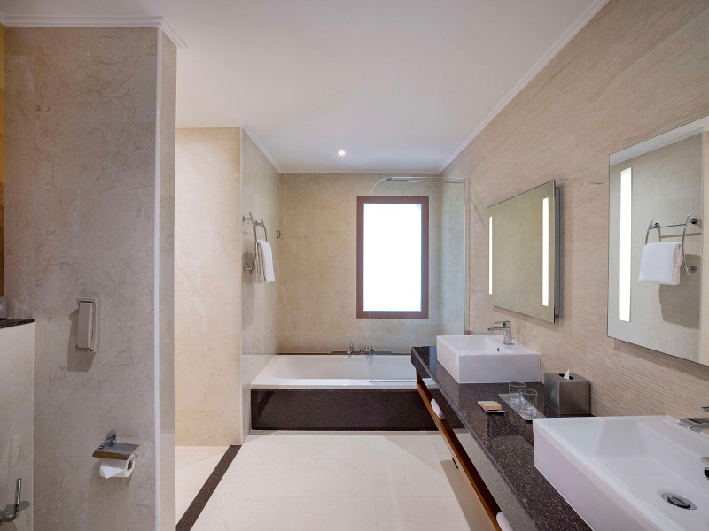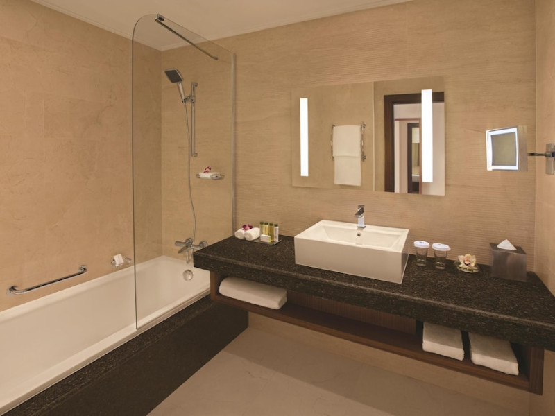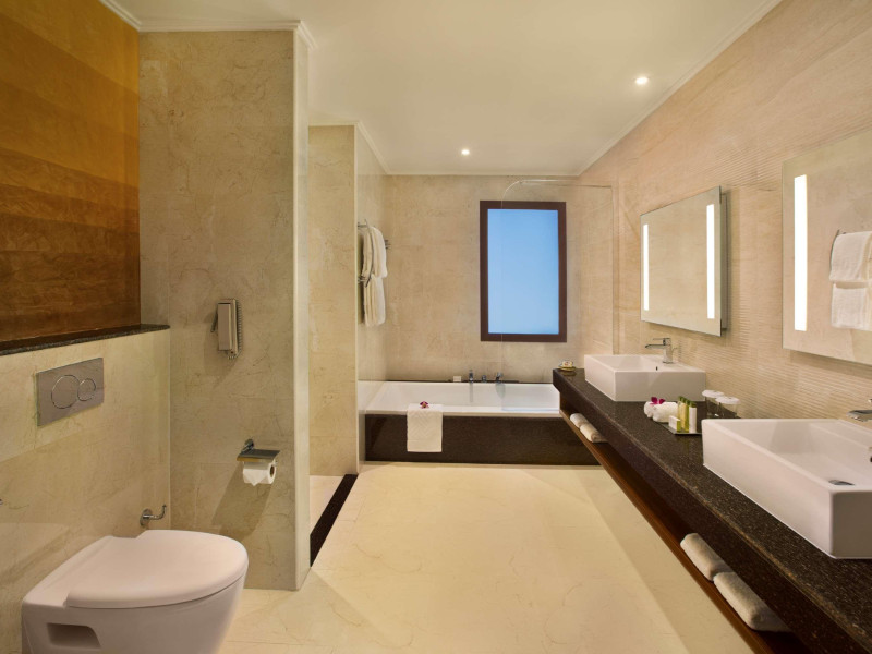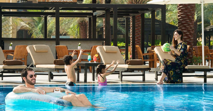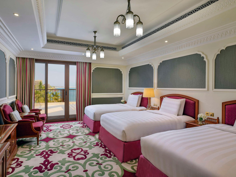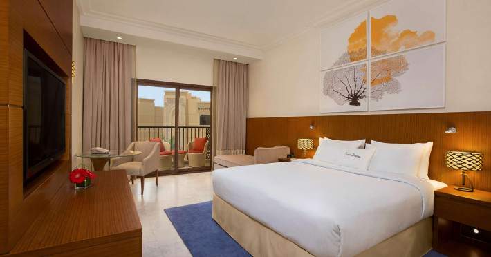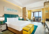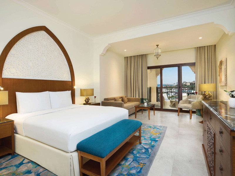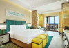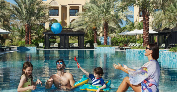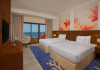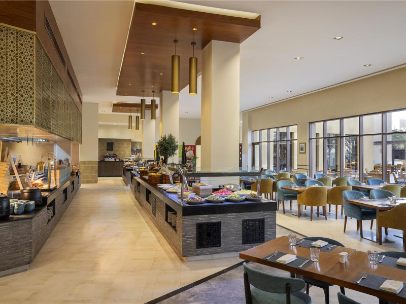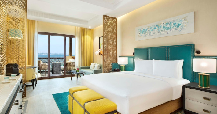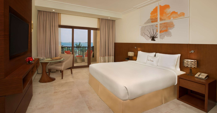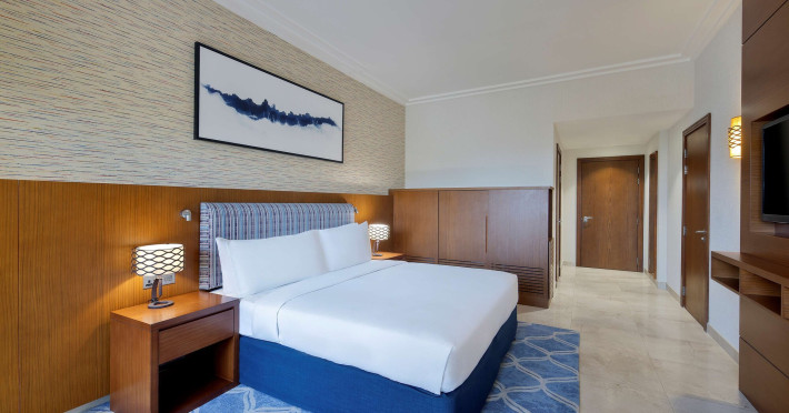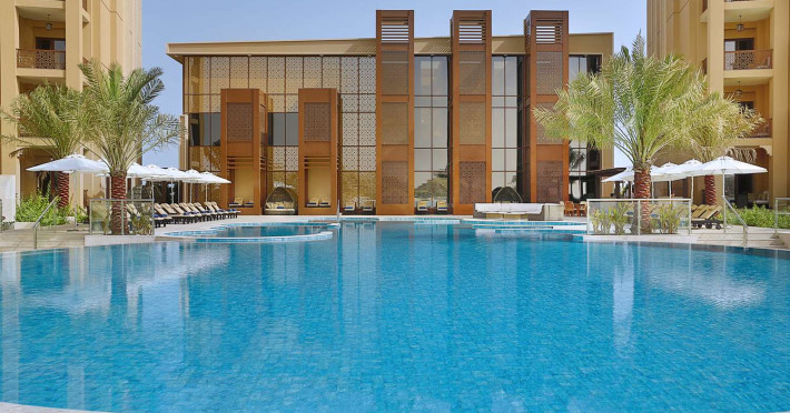 The DoubleTree by Hilton Resort & Spa Marjan Island in Ras Al Khaimah (Al Marjan Island) offers 723 air-conditioned rooms with private balconies or patios, refrigerators, MP3 docking stations, 42-inch flat-screen TVs, and complimentary Wi-Fi. Private bathrooms include showers, complimentary toiletries, and bidets. The resort boasts 650 meters of private white sandy beach, seven temperature-controlled outdoor swimming pools (including two children's pools), an indoor pool, and a floating sea pool with panoramic sea views. A full-service spa provides massages, body treatments, and facials. Dining options include 14 restaurants and bars, including an all-day dining venue, four specialty restaurants, a rooftop bar, two pool bars, a beach bar, a fruit kiosk, a lobby lounge, and a coffee shop; 24-hour room service is also available. A kids' club features a climbing wall, ball pit, video games, movies, and supervised activities, along with dedicated arcade areas for older children and an outdoor playground. A Pirate Boat Aqua Zone with water slides, sprinklers, and buckets, the largest Tarzan boat in the Middle East, two high dive boards (one 14 feet high), two water slides, and a large rope swing provide water activities. A padel tennis court is also available. Additional amenities include complimentary Wi-Fi in public areas, concierge services, babysitting (surcharge), a 24-hour business center, complimentary newspapers in the lobby, dry cleaning/laundry services, free valet parking, and a roundtrip airport shuttle (surcharge). The resort features 3,520 square feet (327 square meters) of event space, including a conference center and three meeting rooms. All-inclusive rates are available; however, charges may apply for some restaurants, special dinners and dishes, some beverages, and other amenities. Buffet breakfasts are available daily for a fee. Al Hamra Mall and Al Hamra Golf Club are within a 10-minute drive. Al Hamra Marina and Yacht Club are 7.4 mi (11.9 km) away, and Dreamland is 8.6 mi (13.9 km) away. Ras Al Khaimah Airport is a 25-minute drive from the resort. The preferred airport is Dubai International Airport (DXB). The Double Tree by Hilton Resort and Spa Marjan Island is a Tourist hotel. The nightlife/restaurants are located in the hotel.