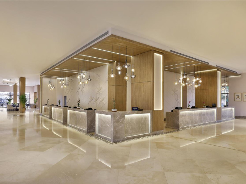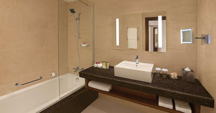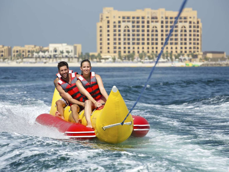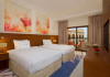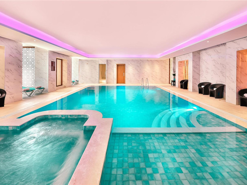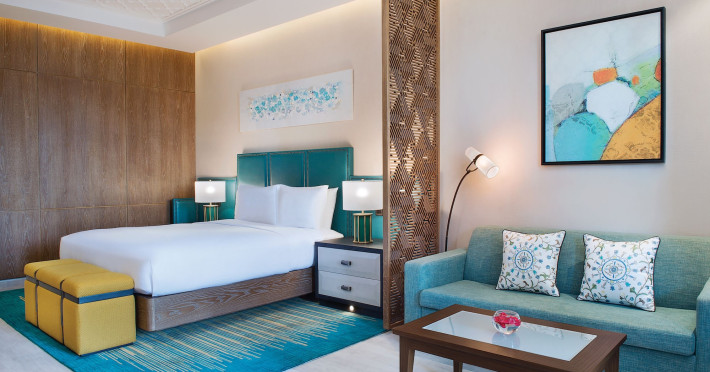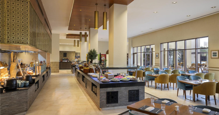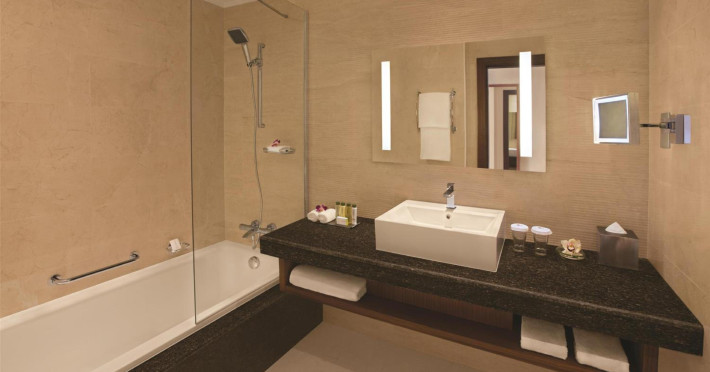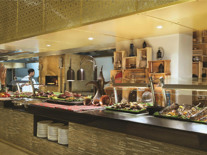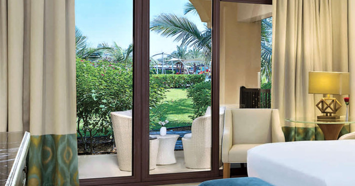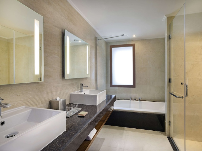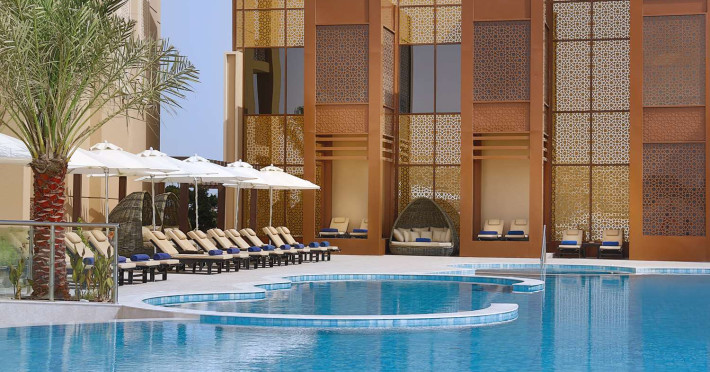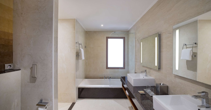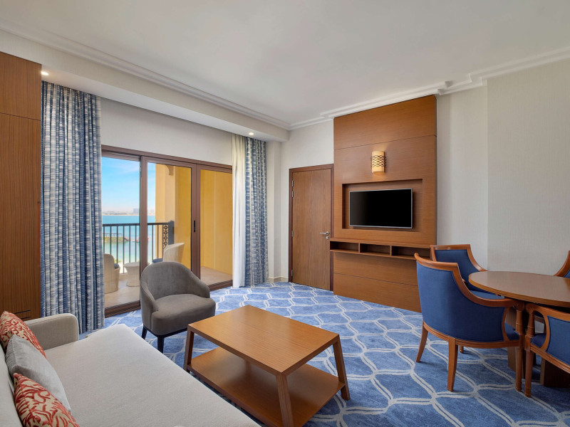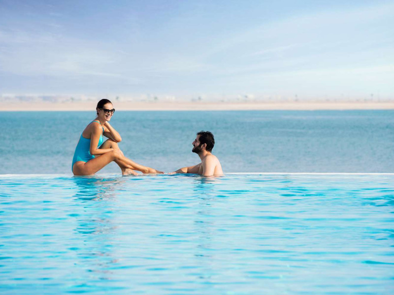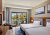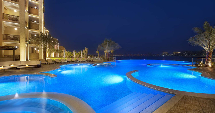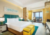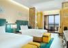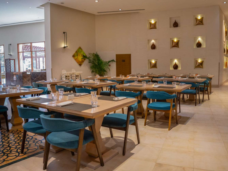 The DoubleTree by Hilton Resort & Spa Marjan Island in Ras Al Khaimah (Al Marjan Island) offers 723 air-conditioned rooms with private balconies or patios, refrigerators, MP3 docking stations, 42-inch flat-screen TVs, and complimentary Wi-Fi. Private bathrooms include showers, complimentary toiletries, and bidets. The resort boasts 650 meters of private white sandy beach, seven temperature-controlled outdoor swimming pools (including two children's pools), an indoor pool, and a floating sea pool with panoramic sea views. A full-service spa provides massages, body treatments, and facials. Dining options include 14 restaurants and bars, including an all-day dining venue, four specialty restaurants, a rooftop bar, two pool bars, a beach bar, a fruit kiosk, a lobby lounge, and a coffee shop; 24-hour room service is also available. A kids' club features a climbing wall, ball pit, video games, movies, and supervised activities, along with dedicated arcade areas for older children and an outdoor playground. A Pirate Boat Aqua Zone with water slides, sprinklers, and buckets, the largest Tarzan boat in the Middle East, two high dive boards (one 14 feet high), two water slides, and a large rope swing provide water activities. A padel tennis court is also available. Additional amenities include complimentary Wi-Fi in public areas, concierge services, babysitting (surcharge), a 24-hour business center, complimentary newspapers in the lobby, dry cleaning/laundry services, free valet parking, and a roundtrip airport shuttle (surcharge). The resort features 3,520 square feet (327 square meters) of event space, including a conference center and three meeting rooms. All-inclusive rates are available; however, charges may apply for some restaurants, special dinners and dishes, some beverages, and other amenities. Buffet breakfasts are available daily for a fee. Al Hamra Mall and Al Hamra Golf Club are within a 10-minute drive. Al Hamra Marina and Yacht Club are 7.4 mi (11.9 km) away, and Dreamland is 8.6 mi (13.9 km) away. Ras Al Khaimah Airport is a 25-minute drive from the resort. The preferred airport is Dubai International Airport (DXB). The Double Tree by Hilton Resort and Spa Marjan Island is a Tourist hotel. The nightlife/restaurants are located in the hotel.