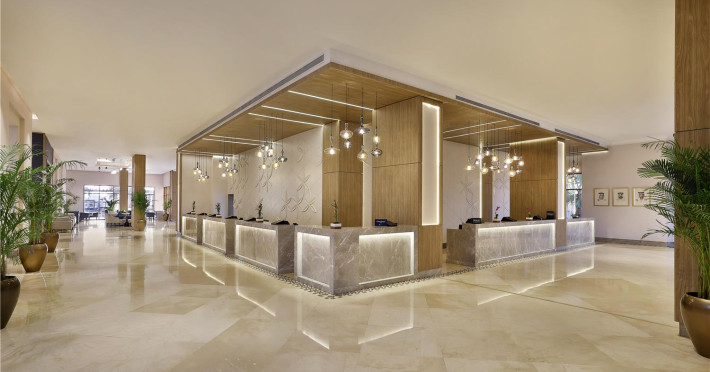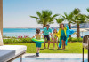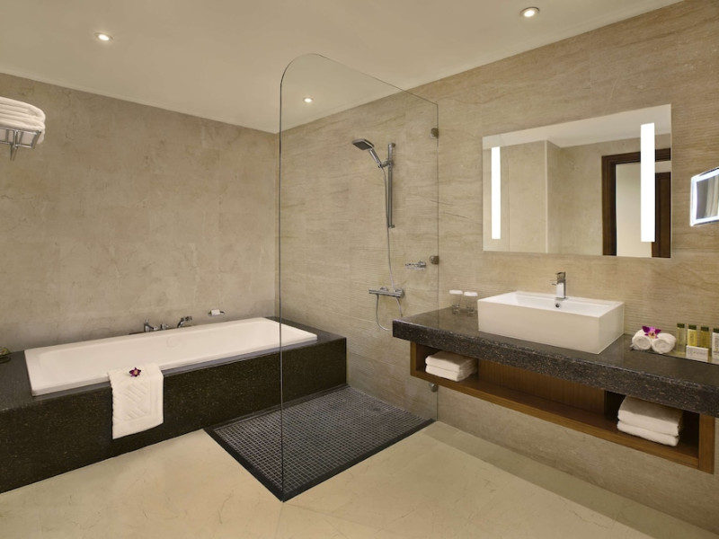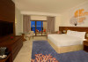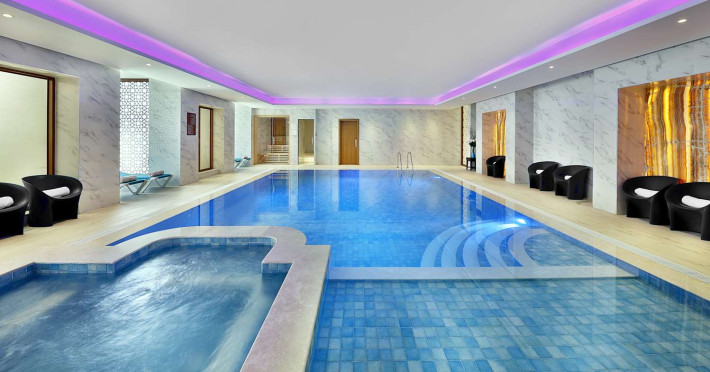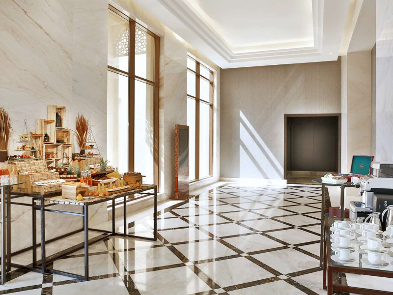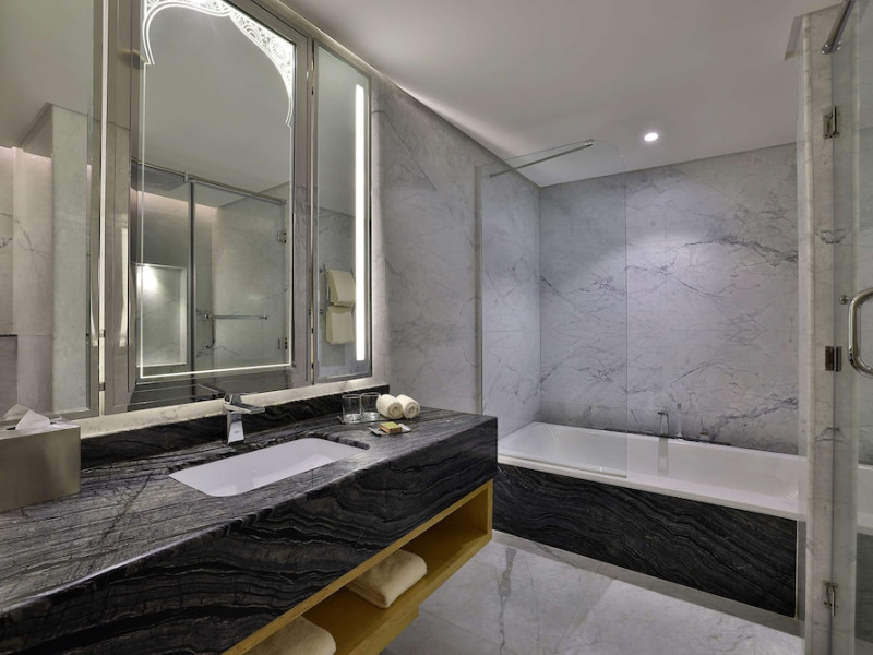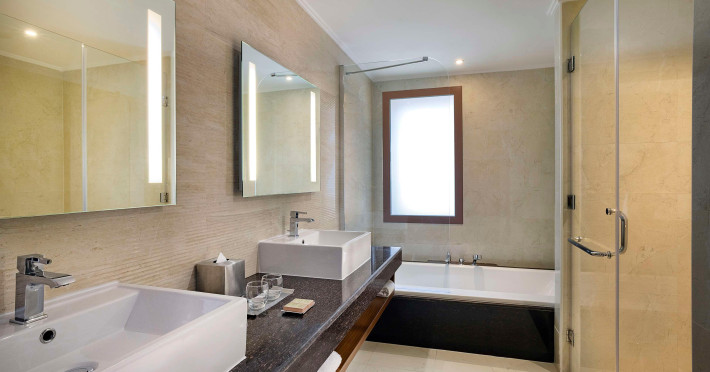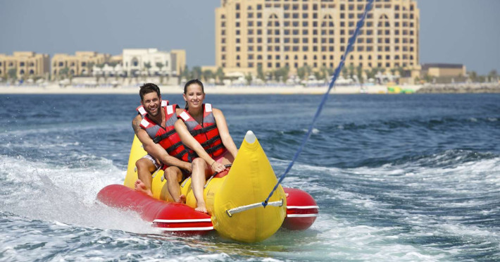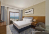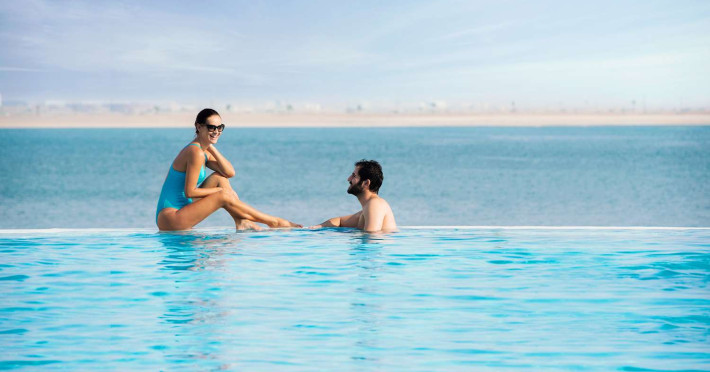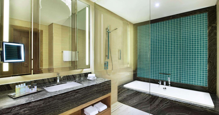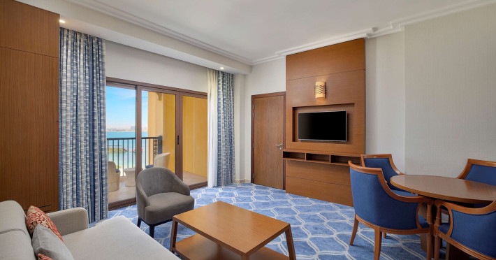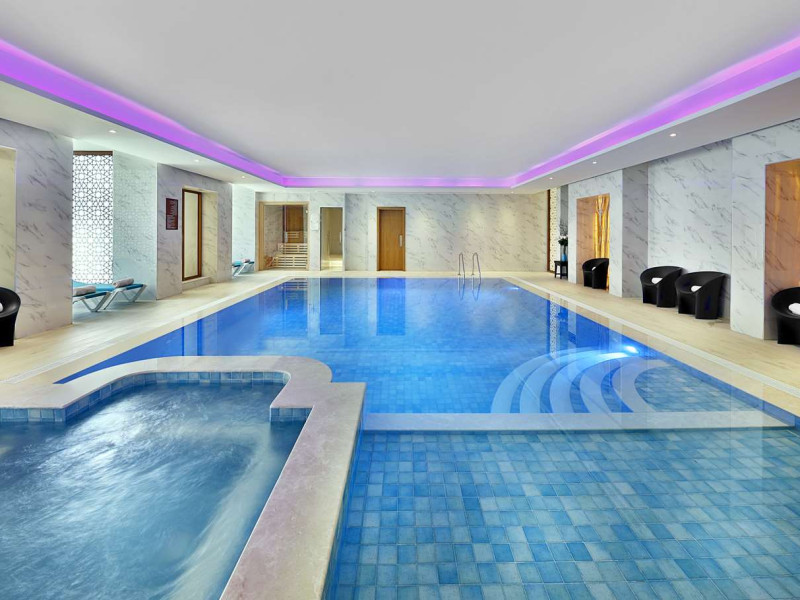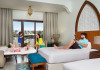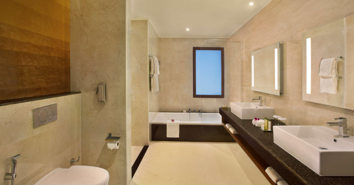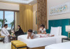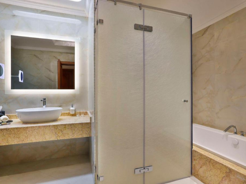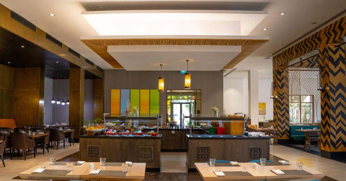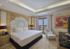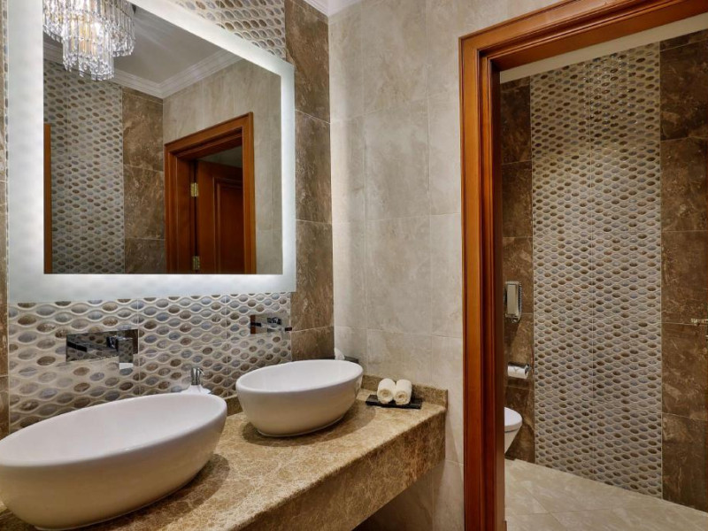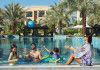 The DoubleTree by Hilton Resort & Spa Marjan Island in Ras Al Khaimah (Al Marjan Island) offers 723 air-conditioned rooms with private balconies or patios, refrigerators, MP3 docking stations, 42-inch flat-screen TVs, and complimentary Wi-Fi. Private bathrooms include showers, complimentary toiletries, and bidets. The resort boasts 650 meters of private white sandy beach, seven temperature-controlled outdoor swimming pools (including two children's pools), an indoor pool, and a floating sea pool with panoramic sea views. A full-service spa provides massages, body treatments, and facials. Dining options include 14 restaurants and bars, including an all-day dining venue, four specialty restaurants, a rooftop bar, two pool bars, a beach bar, a fruit kiosk, a lobby lounge, and a coffee shop; 24-hour room service is also available. A kids' club features a climbing wall, ball pit, video games, movies, and supervised activities, along with dedicated arcade areas for older children and an outdoor playground. A Pirate Boat Aqua Zone with water slides, sprinklers, and buckets, the largest Tarzan boat in the Middle East, two high dive boards (one 14 feet high), two water slides, and a large rope swing provide water activities. A padel tennis court is also available. Additional amenities include complimentary Wi-Fi in public areas, concierge services, babysitting (surcharge), a 24-hour business center, complimentary newspapers in the lobby, dry cleaning/laundry services, free valet parking, and a roundtrip airport shuttle (surcharge). The resort features 3,520 square feet (327 square meters) of event space, including a conference center and three meeting rooms. All-inclusive rates are available; however, charges may apply for some restaurants, special dinners and dishes, some beverages, and other amenities. Buffet breakfasts are available daily for a fee. Al Hamra Mall and Al Hamra Golf Club are within a 10-minute drive. Al Hamra Marina and Yacht Club are 7.4 mi (11.9 km) away, and Dreamland is 8.6 mi (13.9 km) away. Ras Al Khaimah Airport is a 25-minute drive from the resort. The preferred airport is Dubai International Airport (DXB). The Double Tree by Hilton Resort and Spa Marjan Island is a Tourist hotel. The nightlife/restaurants are located in the hotel.