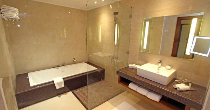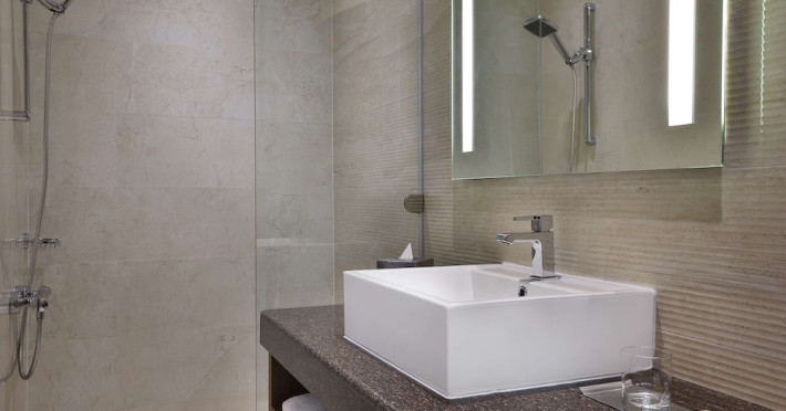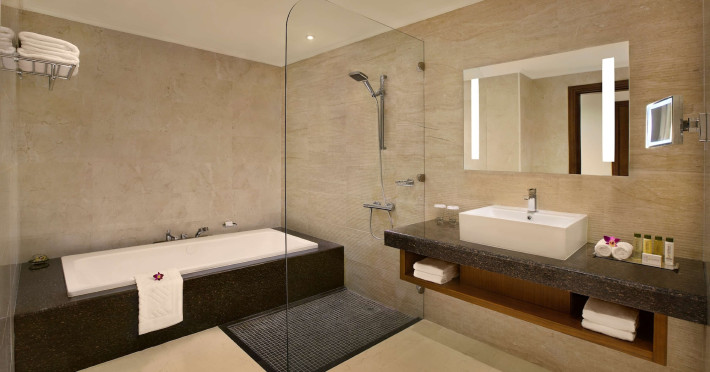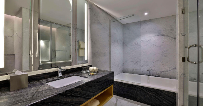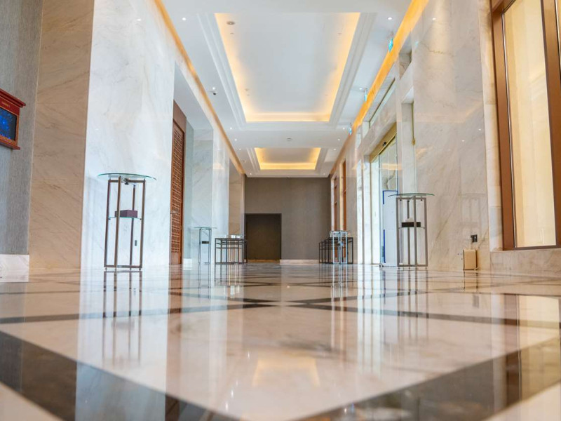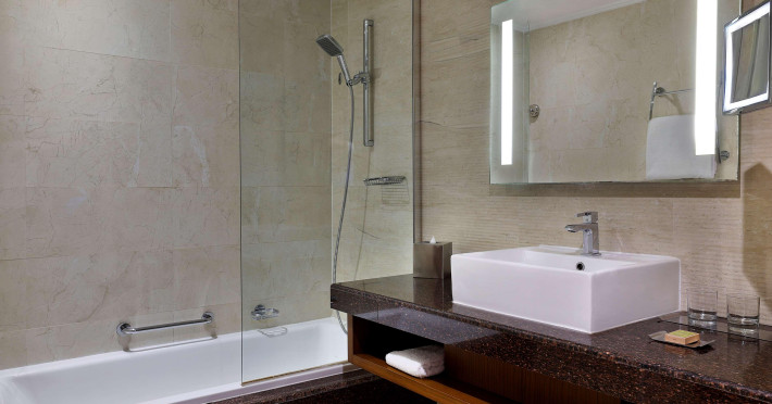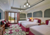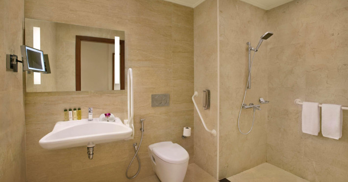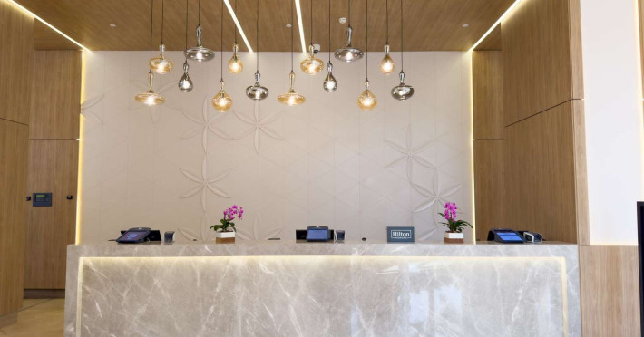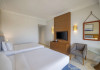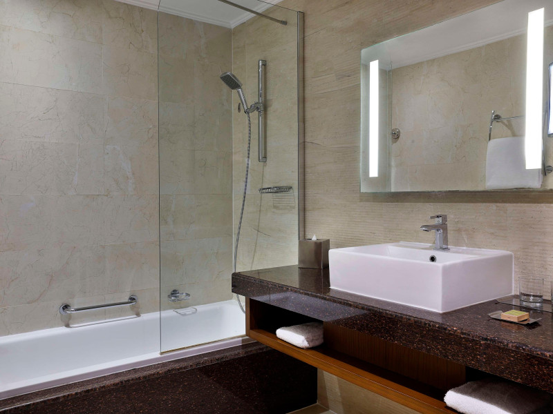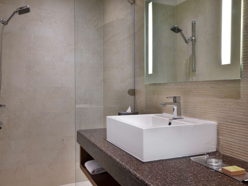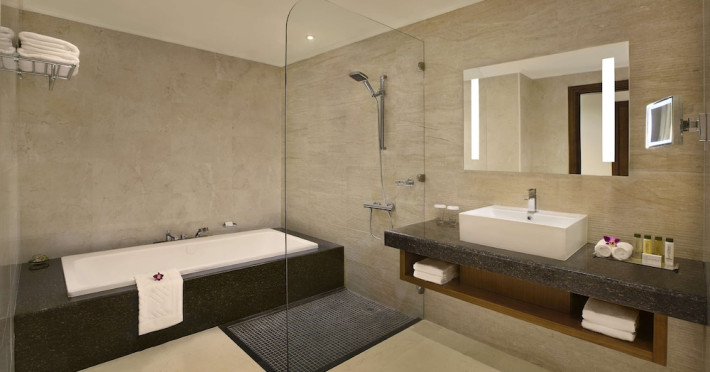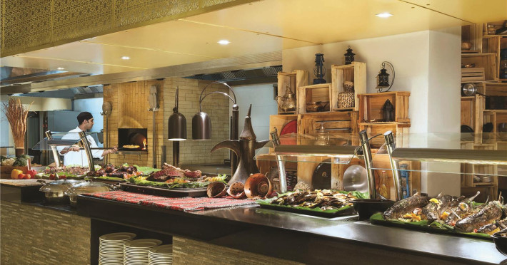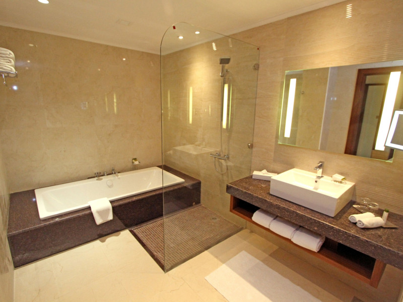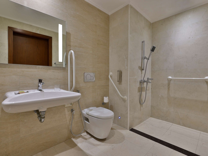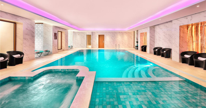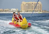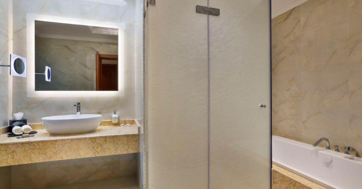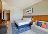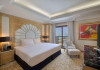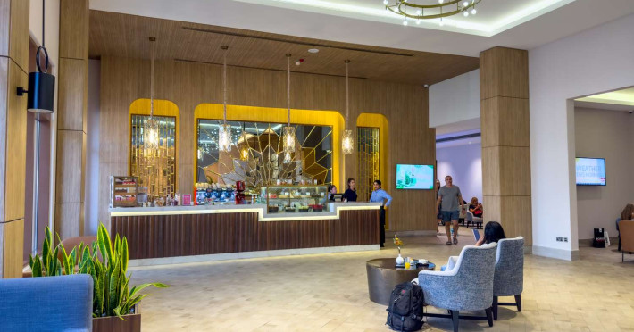 The DoubleTree by Hilton Resort & Spa Marjan Island in Ras Al Khaimah (Al Marjan Island) offers 723 air-conditioned rooms with private balconies or patios, refrigerators, MP3 docking stations, 42-inch flat-screen TVs, and complimentary Wi-Fi. Private bathrooms include showers, complimentary toiletries, and bidets. The resort boasts 650 meters of private white sandy beach, seven temperature-controlled outdoor swimming pools (including two children's pools), an indoor pool, and a floating sea pool with panoramic sea views. A full-service spa provides massages, body treatments, and facials. Dining options include 14 restaurants and bars, including an all-day dining venue, four specialty restaurants, a rooftop bar, two pool bars, a beach bar, a fruit kiosk, a lobby lounge, and a coffee shop; 24-hour room service is also available. A kids' club features a climbing wall, ball pit, video games, movies, and supervised activities, along with dedicated arcade areas for older children and an outdoor playground. A Pirate Boat Aqua Zone with water slides, sprinklers, and buckets, the largest Tarzan boat in the Middle East, two high dive boards (one 14 feet high), two water slides, and a large rope swing provide water activities. A padel tennis court is also available. Additional amenities include complimentary Wi-Fi in public areas, concierge services, babysitting (surcharge), a 24-hour business center, complimentary newspapers in the lobby, dry cleaning/laundry services, free valet parking, and a roundtrip airport shuttle (surcharge). The resort features 3,520 square feet (327 square meters) of event space, including a conference center and three meeting rooms. All-inclusive rates are available; however, charges may apply for some restaurants, special dinners and dishes, some beverages, and other amenities. Buffet breakfasts are available daily for a fee. Al Hamra Mall and Al Hamra Golf Club are within a 10-minute drive. Al Hamra Marina and Yacht Club are 7.4 mi (11.9 km) away, and Dreamland is 8.6 mi (13.9 km) away. Ras Al Khaimah Airport is a 25-minute drive from the resort. The preferred airport is Dubai International Airport (DXB). The Double Tree by Hilton Resort and Spa Marjan Island is a Tourist hotel. The nightlife/restaurants are located in the hotel.