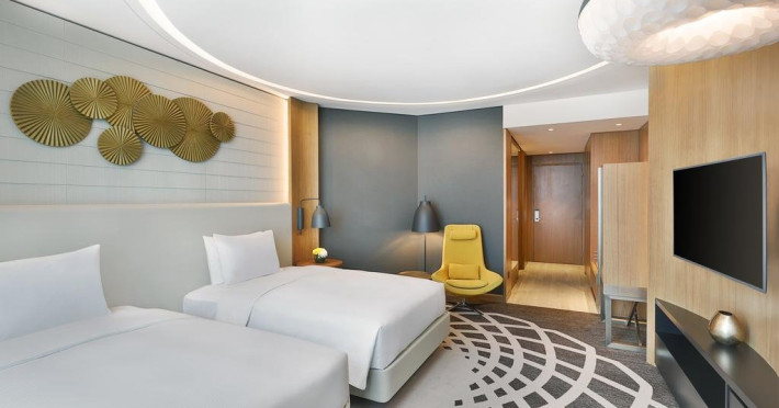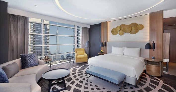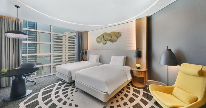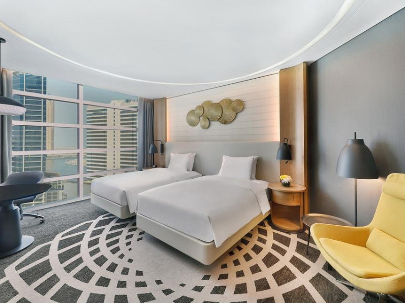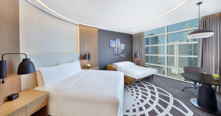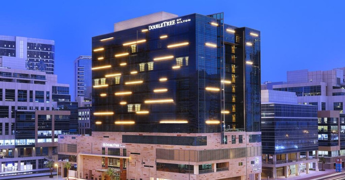 Localizare: Acest hotel este situat in partea de sud-vest a orasului, la numai 4 minute cu masina de centru. Descriere: Hotelul ofera transfer gratuit la DIFC (Dubai International Financial Centre), DWTC (Dubai World Trade Center), iar proprietatea se afla la 3 minute de mers pe jos de statia de metrou Business Bay. Facilitati hotel: Room service, bar, receptie 24 / 24h, centru de fitness, piscina in aer liber, internet Wi-fi gratuit, camera pentru bagaje, spatiu de fumat. Restaurantul de zi My Square este centrul social al hotelului cu bucatarie deschisa si o atmosfera in stil bistro. PizzaExpress Live serveste o pizza foarte buna si muzica live, iar Le Petit Belge serveste bauturi belgiene si Moules Frites clasic. Club de golf cu sezlonguri si bauturi. Dotari camere: Camerele au 25 metri patrati si sunt dotate cu aer conditionat, ceas desteptator, telefon, TV satelit/cablu, internet WiFi gratuit, seif, minibar, halate de baie, oglinda, prosoape, uscator de par, articole de toaleta, baie cu cabina de dus. Website: http://doubletree3.hilton.com/en/hotels/uae/doubletree-by-hilton-dubai-business-bay-DXBBBDI/index.html