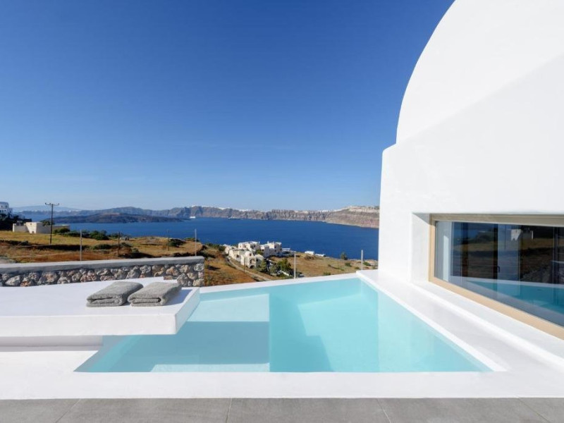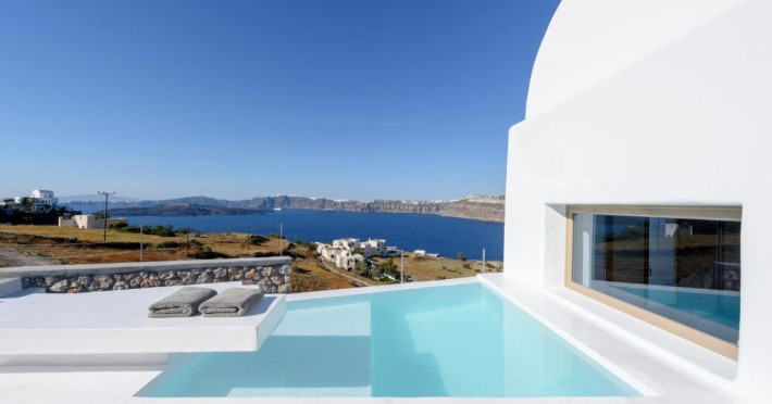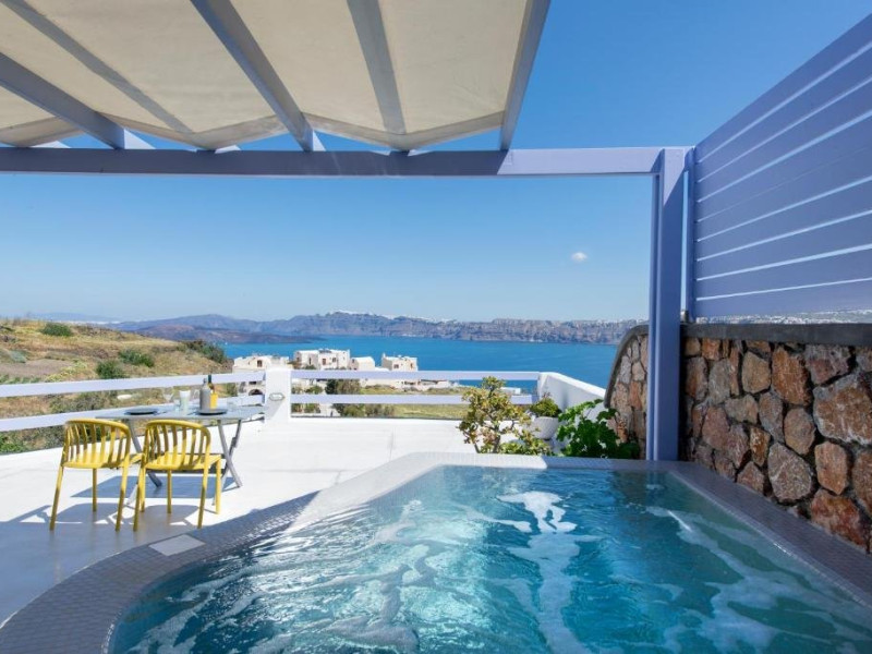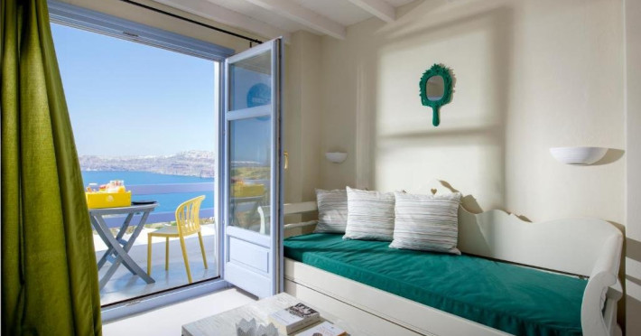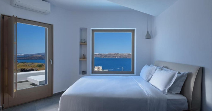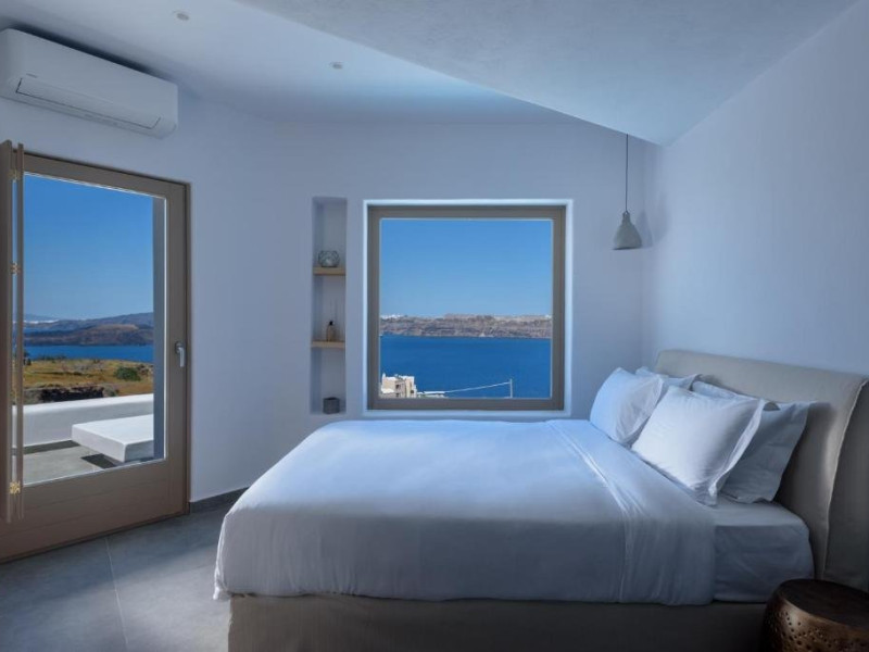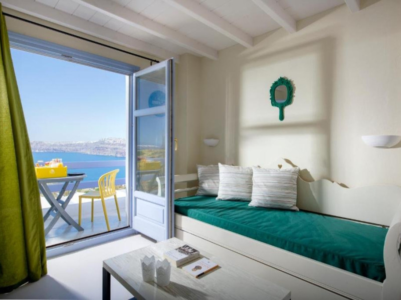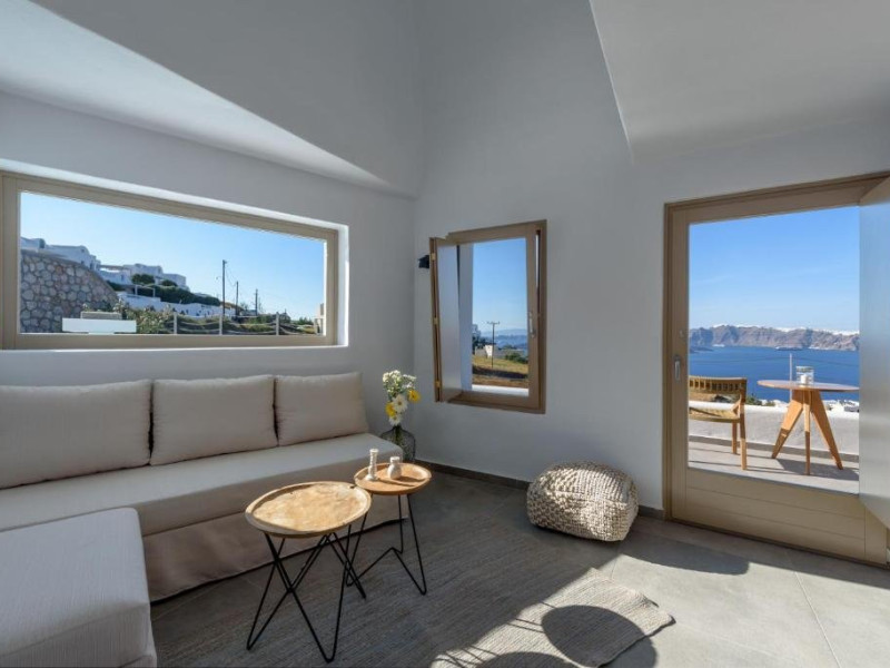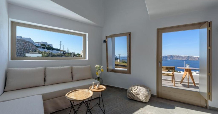 Dotari camere: Hotel Earino are suite spatioase, mobilate modern, extinse pe doua etaje, avand dormitor, camera de zi, sufragerie, bucatarie, balcon cu vedere spre caldera sau Marea Egee, baie cu dus, uscator de par, articole de toaleta, halat si papuci de baie. Suitele sunt dotate cu aer conditionat, TV satelit, Wi-Fi. Unele unitati au piscina privata.