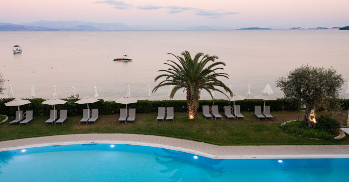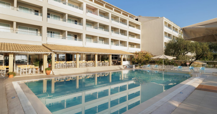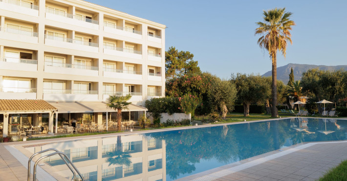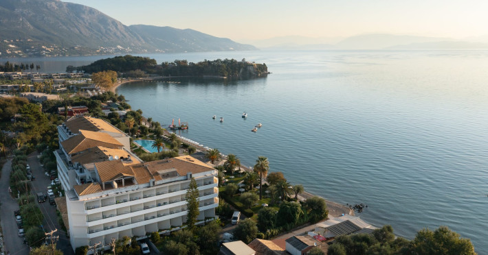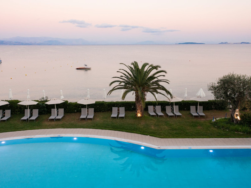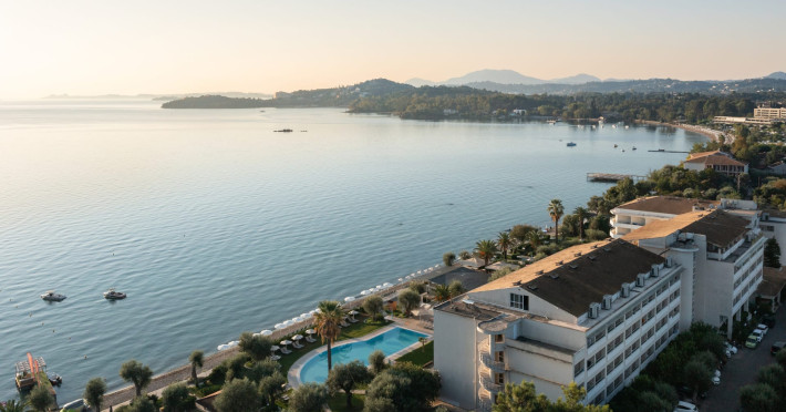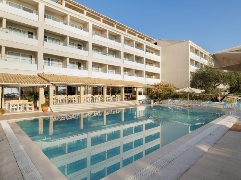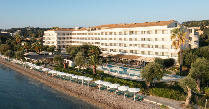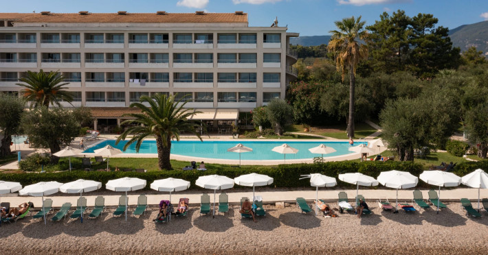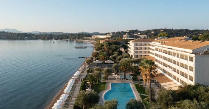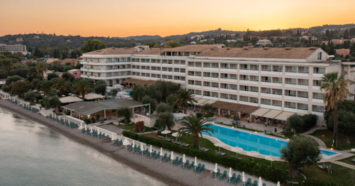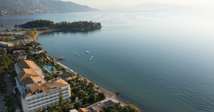 Just 12 km north from Corfu town, Elea Beach is a friendly and well-maintained hotel, ideally located directly on the seafront, with only the pool area separating the hotel from the blue flag award-winning beach. Surrounded by beautiful gardens and a large olive grove, Elea Beach is ideal for families and for couples of all ages. Shops and a choice of restaurants are nearby. Corfu Town is easily reached by regular bus connection.
