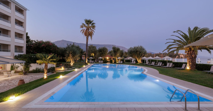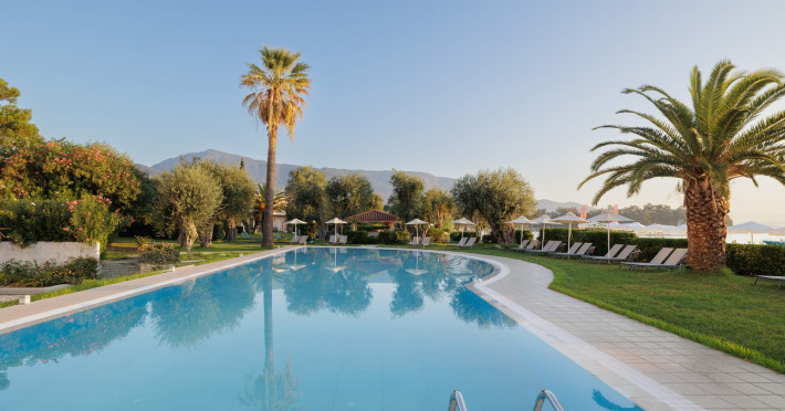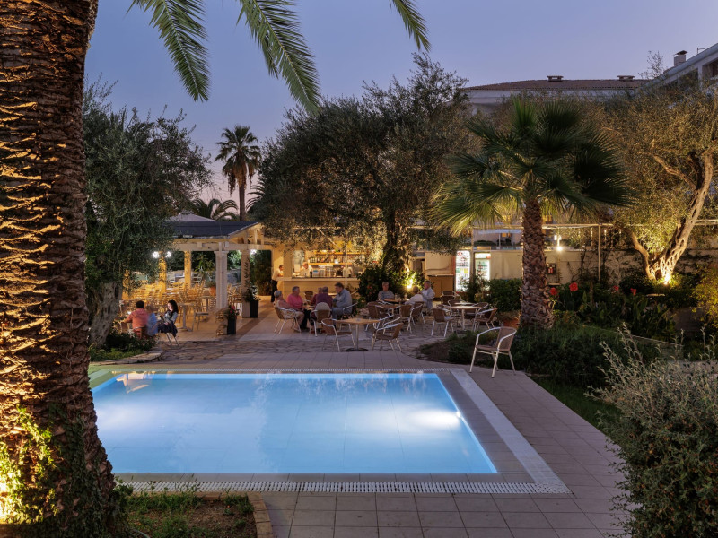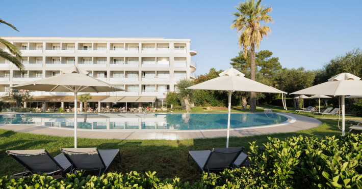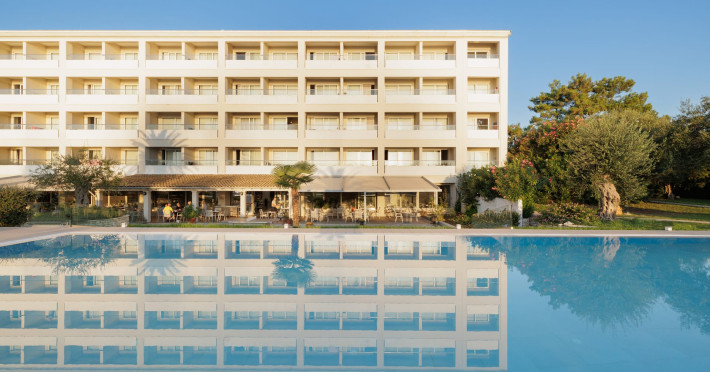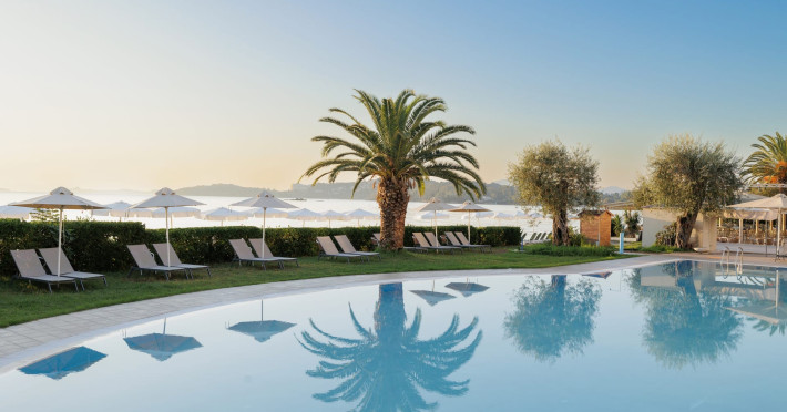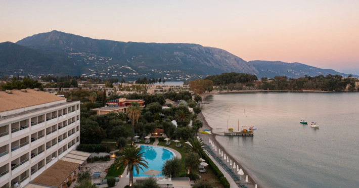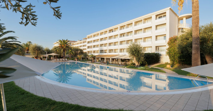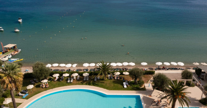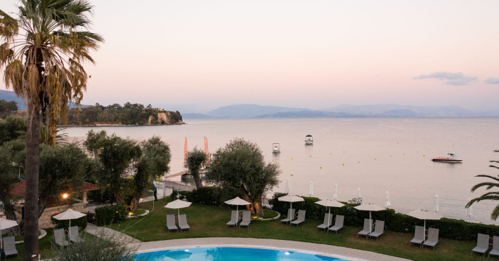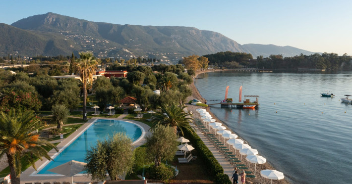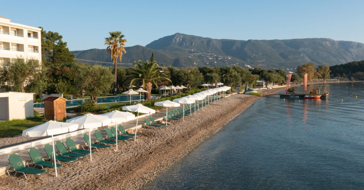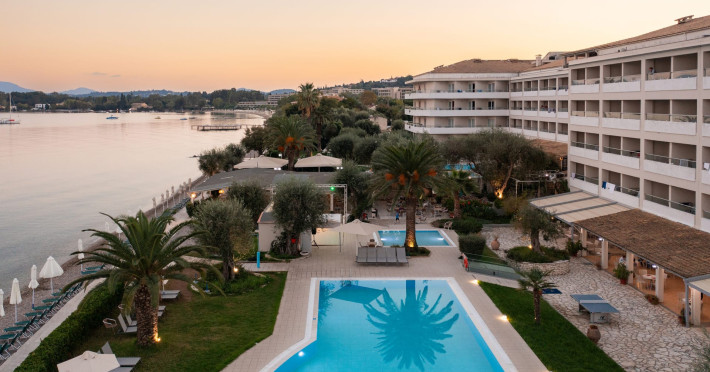 Just 12 km north from Corfu town, Elea Beach is a friendly and well-maintained hotel, ideally located directly on the seafront, with only the pool area separating the hotel from the blue flag award-winning beach. Surrounded by beautiful gardens and a large olive grove, Elea Beach is ideal for families and for couples of all ages. Shops and a choice of restaurants are nearby. Corfu Town is easily reached by regular bus connection.