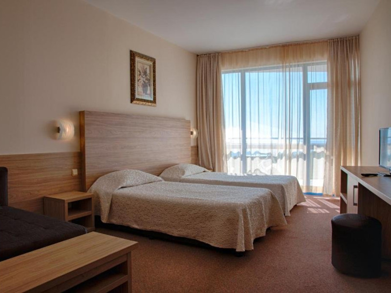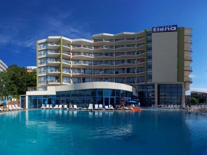 Localizare: Hotelul de patru stele este situat in partea de sud a statiunii Nisipurile de Aur. Acesta este amplasat la cativa pasi de mare (aproximativ 200 metri) si de zona comerciala a statiunii (la 150 metri), intr-o zona linistita. Facilitati hotel: Hotelul pune la dispozitia clientilor restaurant, terasa in aer liber, bar la piscina si in hol, centru wellness, piscina exterioara si interioara, sala de sport, schimb valutar. Contra cost, turistii se pot bucura de o camera de aburi, terapie cu namol, baie turceasca si masaje. Dotari camere: Camerele sunt dotate cu aer conditionat, WiFi si balcon, frigider, TV prin cablu si baie cu dus sau cada. Site web: http://www.elenahotel.eu/