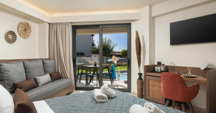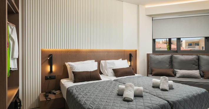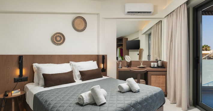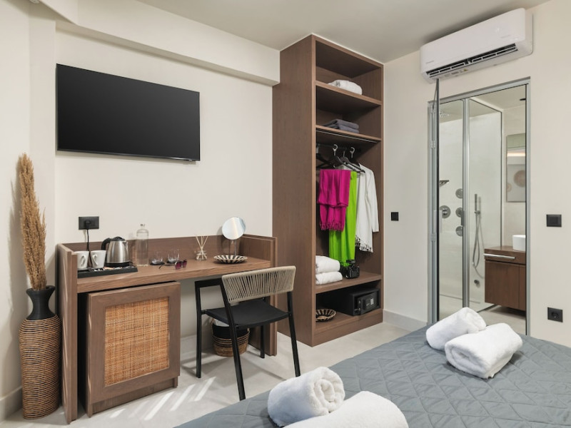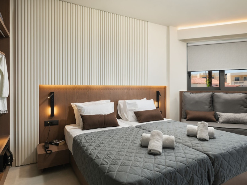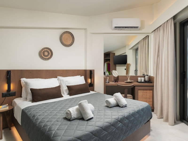 Located on Agia Marina Beach in Agia Marina, Chania, Crete, Elia Agia Marina Resort offers air-conditioned rooms with private balconies and Smart TVs. Guests can enjoy complimentary wireless internet access, a restaurant, coffee shop/cafe, and a bar/lounge, as well as 24-hour room service. A complimentary buffet breakfast is served daily. The hotel features an indoor pool and a seasonal outdoor pool, along with massage, body treatment, and facial services. Additional amenities include a 24-hour front desk, concierge services, a computer station, and dry cleaning/laundry services. Conference space and meeting rooms are available. Free self-parking is provided. Agia Marina Beach is a short distance from the hotel, and Ioannis Daskalogiannis Airport (CHQ) is 29 km away. The Elia Agia Marina Resort is a hotel.