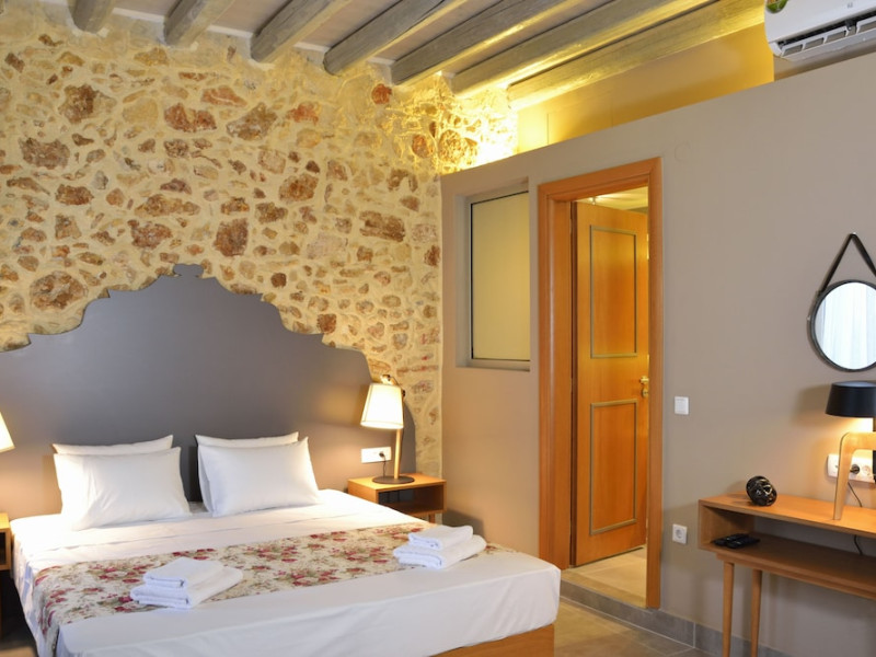 Elia Kentron- Adults Only is a restored, neoclassical stone building located in the historic center of Chania at Chortatson square, next to the Municipal Market. The guesthouse offers 8 individually decorated rooms for adults only. The rooms feature air conditioning, a fridge, satellite TV, a safebox, and an espresso coffee maker. Some rooms have a balcony overlooking the pedestrian alley with shops or Chortatson square and the Municipal Market, while two attic rooms feature roof windows. Some rooms also include a jacuzzi. Complimentary wireless internet access and concierge services are available. A roundtrip airport shuttle is provided for a surcharge (available 24 hours). Buffet breakfasts are available daily from 7:30 AM to 10:30 AM for a fee. Check-in takes place at Elia Bettolo Hotel, 50 meters away, with staff available 24/7. Housekeeping is provided daily. The guesthouse is steps from Chania Central Market and a short walk from the Old Venetian Harbor. Ioannis Daskalogiannis Airport (CHQ) is 14.7 km away. The Elia Kentron is a hotel.