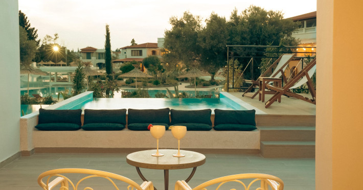 Close to Athens yet an idyllic island getaway, the fully renovated Zeus Eretria Resort invites you to an all-inclusive experience of carefree coastal vacationing at its best.Our elegant Suites with endless sea views, and chic Bungalows with private pool are designed for couples, friends, and families to relish both their privacy and togetherness feeling right at home in our charming facilities.Lush gardens and spanning views of natural landscapes, a large, lavish pool and exceptional food and drink services are designed to offer you the ultimate comforts and delights of Greek philoxenia.For extra pampering and even deeper rejuvenation, leave yourself in the hands of certified professionals at our sophisticated spa/gym. For more active adventures, ask us to help you plan memorable escapades around the island’s many treasured spots.Many of our guests fall so in love with the resort that they organise their most meaningful and unforgettable events on our premises. From weddings and other parties to work events, our experience and care provides you and your guests with the highest quality facilities and catering.Our location and scenery as well as our multi-varied facilities and excellent services make the Zeus Eretria Resort an ideal location for organising your dream wedding, anniversary, birthday party or baptism.For corporate gatherings, we can provide a high-technology Conference Hall with all the necessary equipment and 11 multi-functional meeting rooms that can accommodate more than 2,000 delegates. We also offer numerous services and facilities that can take any work-related event to the most qualitative of levels.