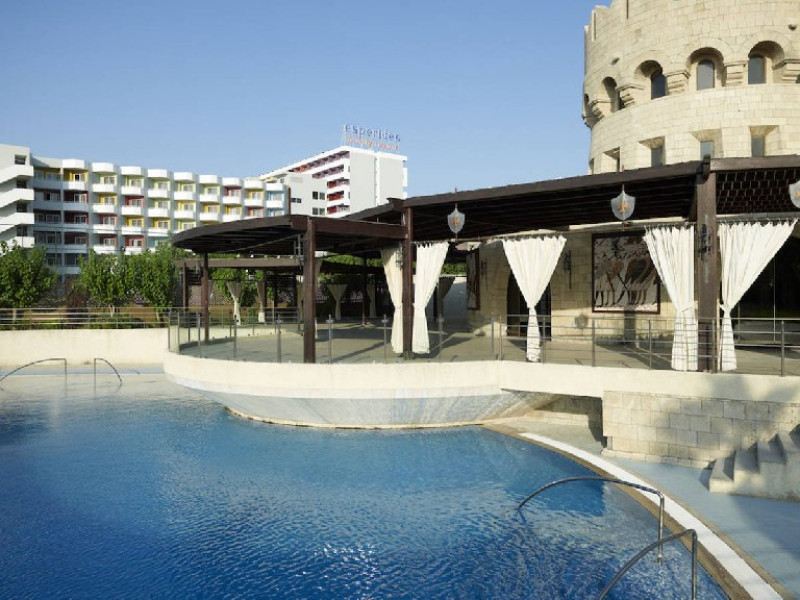 Localizare: in Faliraki, pe plaja cu nisip, la 3 km distanta de centrul statiunii, la 9 km de orasul Rodos si la 18 km de aeroport. Durata transfer: intre 30 si 60 minute.Dotari camere: aer conditionat, acces internet WiFi (gratuit), telefon, seif (gratuit), televizor, mini frigider, mini bar (la cerere, contra cost), uscator de par, halate si papuci de baie, balcon/terasa. Facilitati hotel: restaurant bufet, restaurant a la carte, bar, baruri la piscina si pe plaja, piscina, lazy river, sezlonguri si umbrele (gratuite atat la piscina cat si pe plaja), prosoape de plaja, mini market, tenis de masa, biliard (contra cost), tenis de camp (echipament contra cost), mini golf, volei pe plaja, sporturi acvatice (contra cost, furnizor extern), centru spa (contra cost), sauna, pisicna interioara, centru fitness. Important! Oaspetii care vor rezerva servicii all inclusive vor servi mesele si bauturile la hotelul alaturat, Esperos Mare (50-90 m distanta). Web site: https://www.esperiagroup.gr/our-hotels/esperos-palace-resort Pentru anumite facilitati din hotel sau din camera, hotelierul poate solicita taxe suplimentare. In momentul sosirii la hotel solicitati receptionerului sa va informeze cu exactitate asupra lor. Taxa de statiune obligatorie - se plateste la receptie: