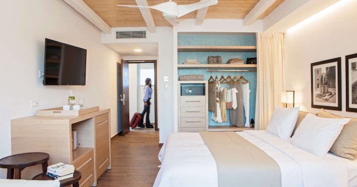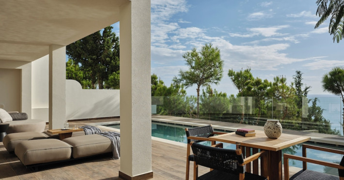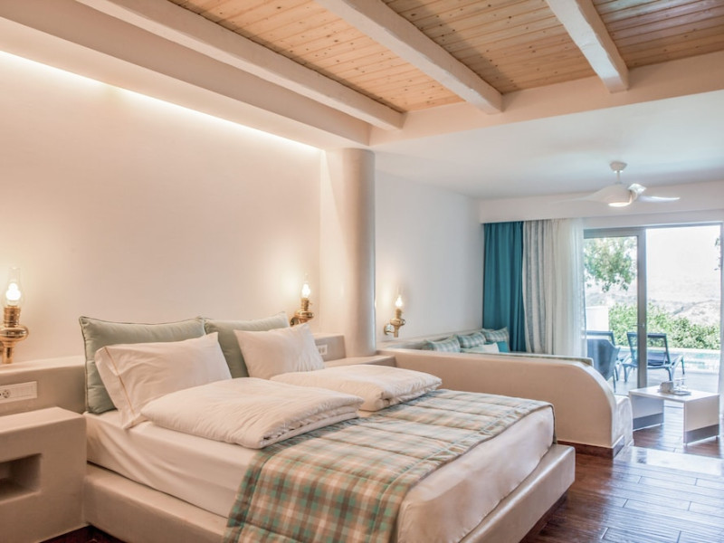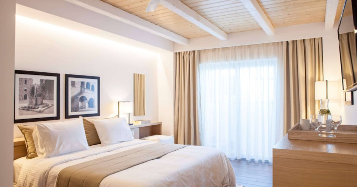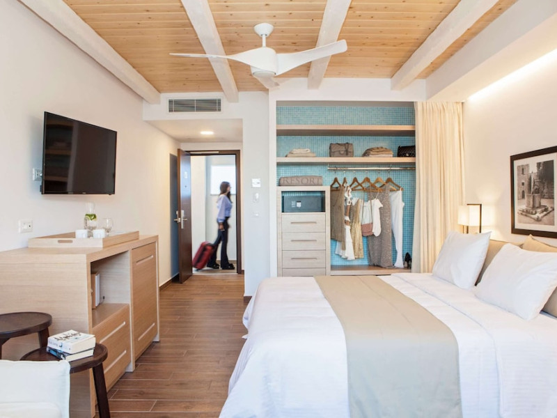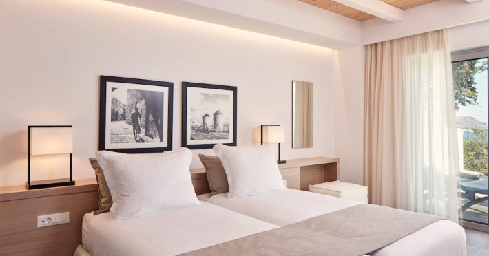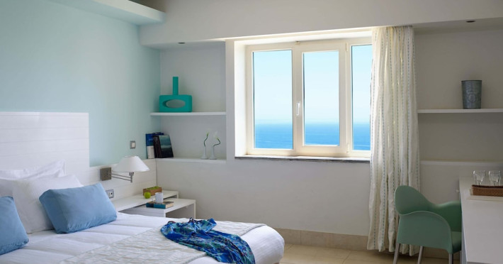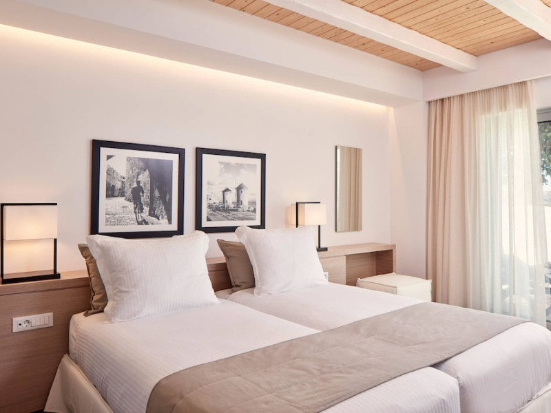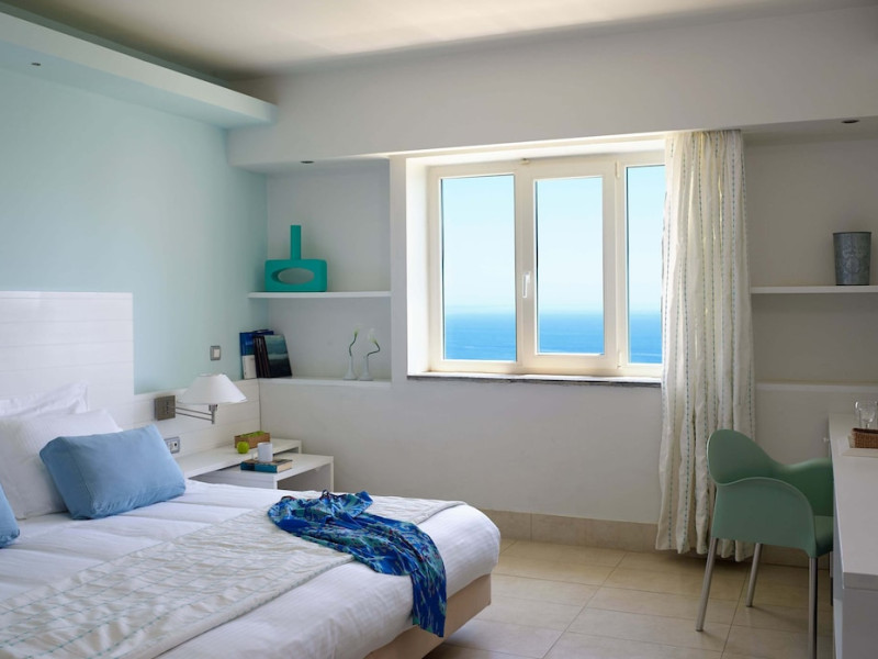 The general facilities and services 24-hour reception, concierge service, luggage room, courtesy room, Wi-Fi in public areas (free), mini market/souvenir shop, boutique, 2 outdoor swimming pools (includes 1 heated pool during October-April), sunbeds and umbrellas (free at the pool, with extra charge at the public beach), pool/beach towels (free), onsite parking (free), private chapel, airport and port transfer service (on request with extra charge), car and motorbike rental (extra charge), complimentary shuttle bus service to the beach (every 20 mins), pet sitting service (extra charge), doctor on call (extra charge), first aid, bar, restaurants, Daytime activities (yoga classes) and evening entertainment (6 times per week) Billiards (extra charge), nearby tennis court and tennis equipment (extra charge), table tennis (free) Spa center with outdoor heated pool, hammam, jacuzzi, massage treatments, beauty treatments, manicure and pedicure (extra charge) Dogs up to 7 kg are allowed (on request and with extra charge). The room features central air-conditioning (free), Wi-Fi (free), a direct-dial telephone, safety deposit box (free), a smart TV (with satellite channels), a mini fridge, a mini bar (extra charge), coffee and tea facilities, a bathtub/WC or shower/WC, a hairdryer, bathroom amenities, a bathrobe, slippers, a balcony/terrace, wake-up service, 16-hour room service (extra charge), maid service (daily), towel change (4 times per week or daily on request), linen change (3 times per week or daily on request), laundry and ironing service (extra charge), a bottle of water in the room upon arrival, and accepted credit card/debit cards. Visa, MasterCard, American Express. Half Board Early breakfast service is available on request 1 day in advance until 19:00. Breakfast is an American and Greek buffet in the Aphrodite restaurant (07:00-10:30) or, alternatively, an American and Greek buffet at the Panorama restaurant (07:00-10:30). Late breakfast service at Panorama restaurant (10:30-11:00) Dinner is a full buffet with show cooking at Aphrodite restaurant (18:30-21:30). Vegetarian, vegan and special dietary options on request. Theme nights at Aphrodite restaurant: smart casual dress code is required for dinner in all restaurants (gentlemen are kindly requested to wear long or short sleeves and long trousers or trousers below the knee). Dine Around program: A choice between a dinner buffet at Aphrodite restaurant (18:30-21:30) or a table d'hôte dinner at Panorama restaurant (18:30-21:30, drinks not included) or dinner at Burger House Project (18:30-21:30, valid 1 time per week, drinks not included, reservation 1 day in advance is required). Only guests 16 years old and above can be accommodated. The operation of certain services and facilities is subject to weather conditions.