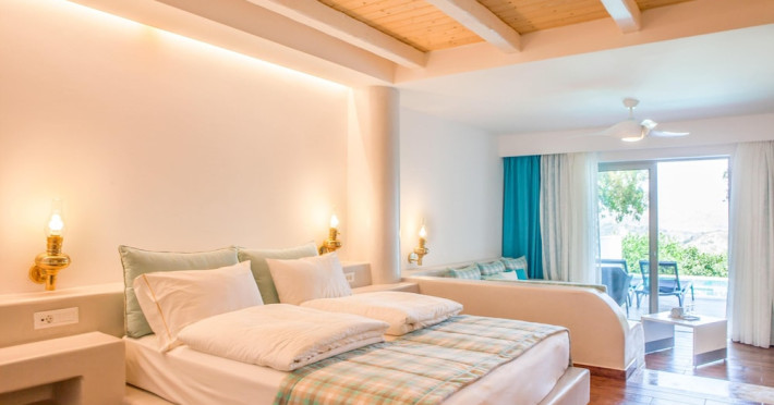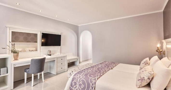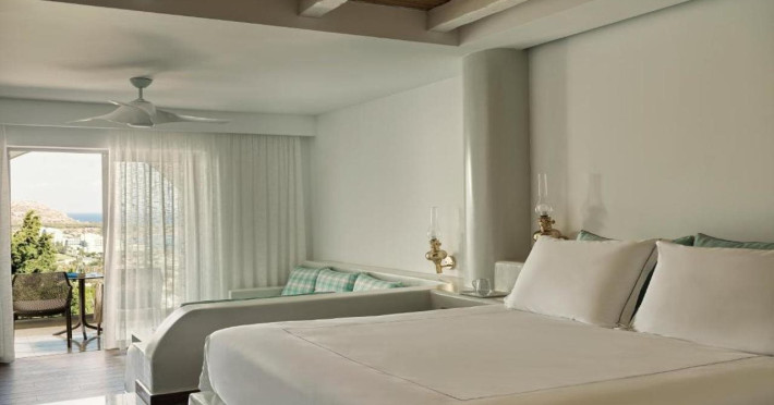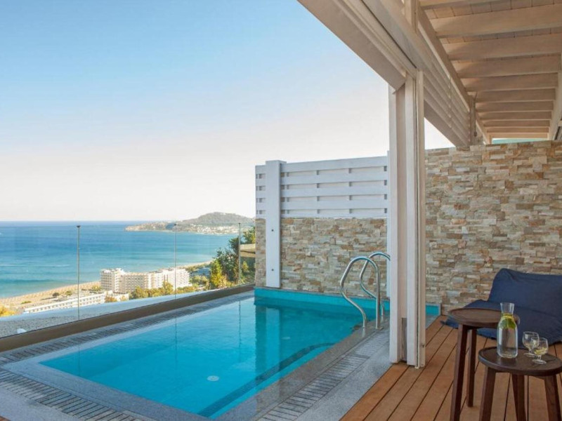 Facilities and services included 24-hour reception, concierge service, luggage room, courtesy room, Wi Fi in public areas, mini market/souvenir shop, boutique, 2 outdoor swimming pools (includes 1 heated pool during October-April), sunbeds & umbrellas (free at the pool, with extra charge at the public beach), pool/beach towels, onsite parking, private chapel, airport & port transfer service (on request with extra charge), car & motorbike rental (extra charge), complimentary shuttle bus service to the beach (every 20 mins), pet sitting service (extra charge), doctor on call (extra charge), first aid, restaurants, bars, fitness room, spa center with indoor heated pool (extra charge), hammam (extra charge), jacuzzi (extra charge), and massage treatments (extra charge). Sports facilities include billiards (extra charge), tennis court & tennis equipment, table tennis.Room features air-conditioning/heating , Wi-Fi, direct-dial telephone, safety deposit box, Smart TV (with satellite channels), mini fridge, mini bar (extra charge), coffee & tea facilities, bathtub/WC or shower/WC, hairdryer, bathroom amenities, bathrobe, slippers, balcony/terrace, wake-up service, 16-hour room service (extra charge), maid service (daily), towel change (4 times per week or daily on request), linen change (3 times per week or daily on request), laundry & ironing service (extra charge), bottle of water in the room upon arrival.Note: - Dogs up to 7 kg are allowed (on request & with extra charge)- Only guests 16 years old and above can be accommodated- Some of the facilities may be closed due to weather / seasonal conditions.Address: Leof. Kallitheas P.o Box: 202 Kalithea, Rhodes, Greece 85100.
