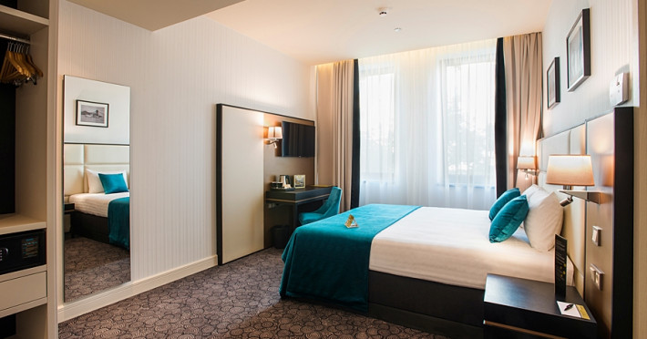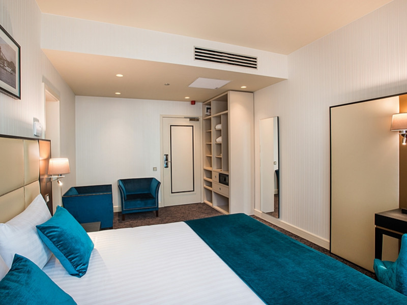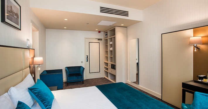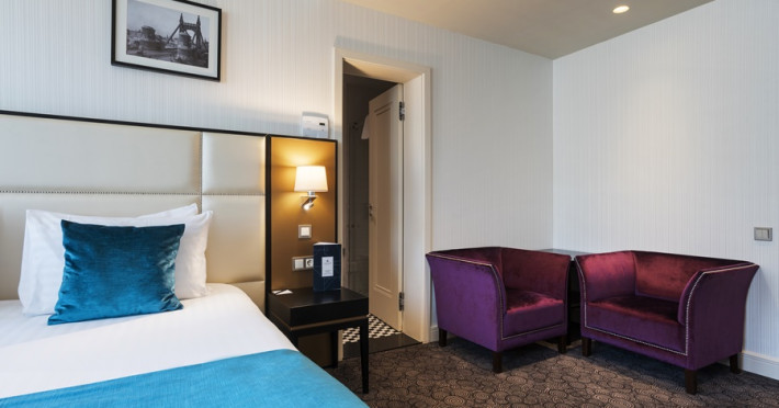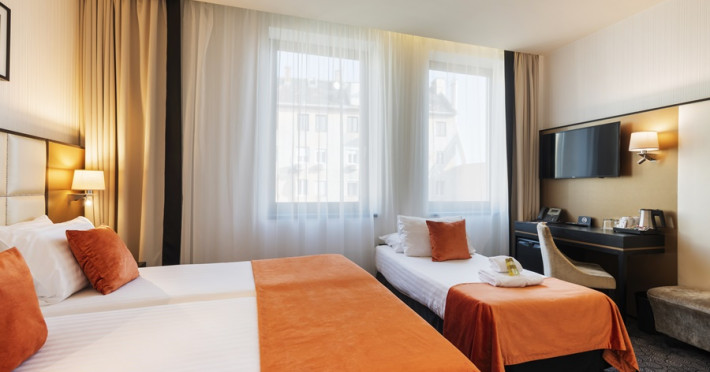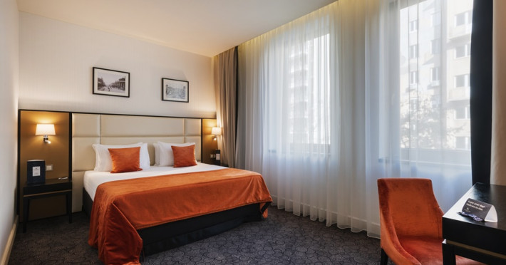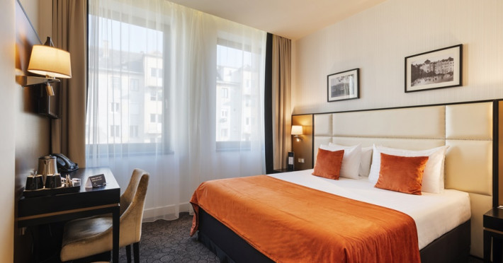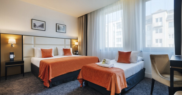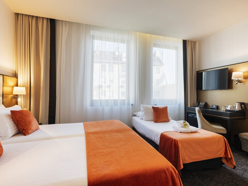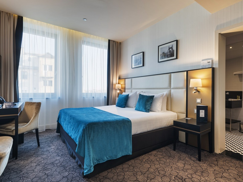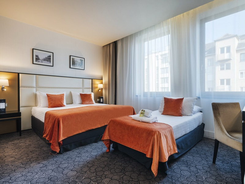 Built in 2016, the Eurostars Danube Budapest 4* hotel is located in the heart of Budapest, just a short walk away from Dek Square. With modern and practical facilities, the Eurostars Danube Budapest 4* hotel has 101 rooms and a wide range of services for the comfort of our guests. Situated next to the luxurious Andrssy Avenue and the Jewish quarter, our hotel guests can enjoy a wide range of restaurants, bars, clubs and tourist attractions. The hotels location means you can travel comfortably around the city using public transport, as you can find metro stations and bus stops just a few minutes away from the hotel. At the Eurostars Danube Budapest 4* hotel we sure to offer you the best possible services throughout your stay, which is why provide a restaurant, 24 hour reception, airport transfer service (at an extra charge) and breakfast buffet every morning. In addition, all our rooms are fully-equipped and decorated to suit your needs. After a day of tourism around Budapest, come and enjoy the hotel bar and try one of our freshly-prepared cocktails. On line check-out available.
