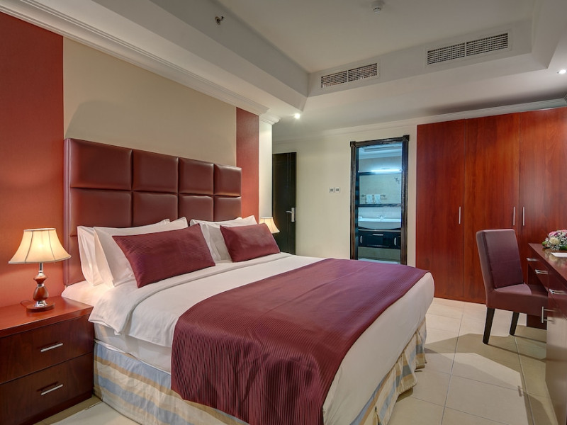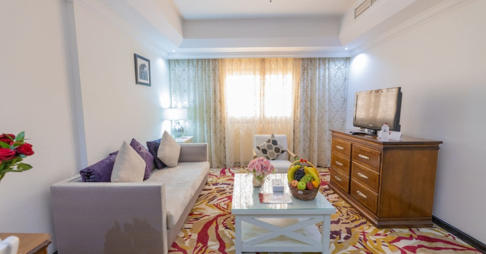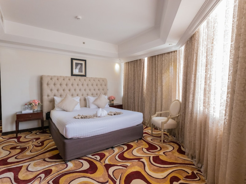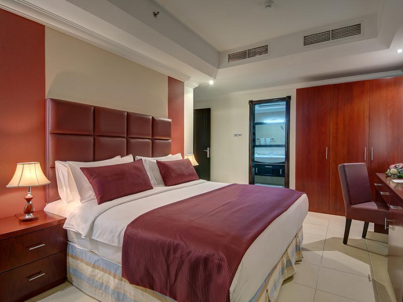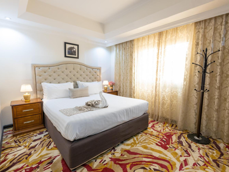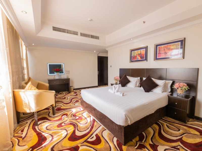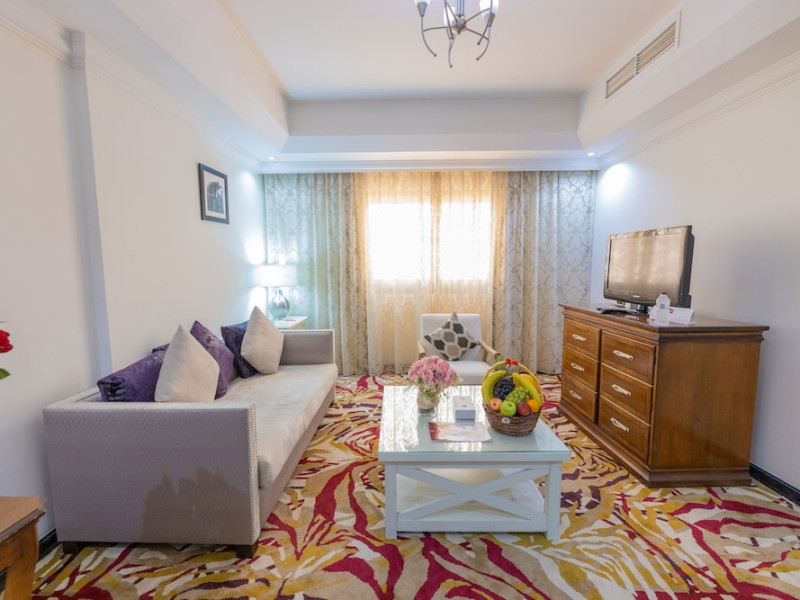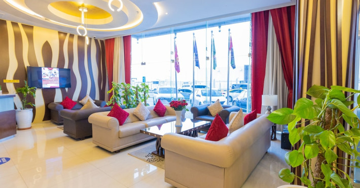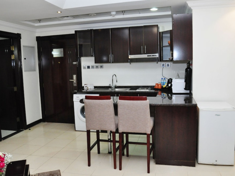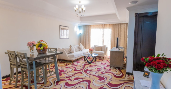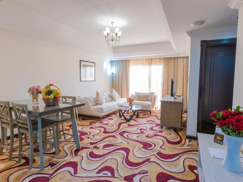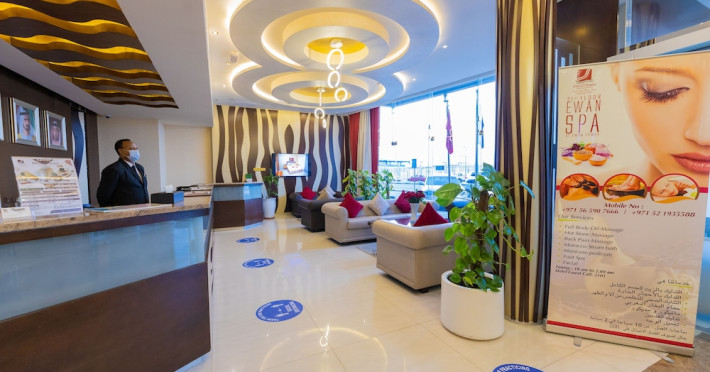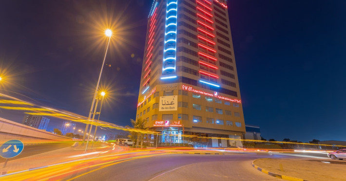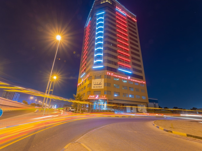 Ewan Ajman Suites Hotel offers modern suites with free Wi-Fi, air conditioning, LCD TVs, and kitchenettes. Located less than 20 km from Dubai and Sharjah International Airports, it's a 10-minute drive from Ajman Port Trust Authority and Hamriyah Free Zone Authority, and a 5-minute drive from Ajman Beach. The hotel features an outdoor pool, a hot tub, a fitness center, and a restaurant on the 13th floor with panoramic Ajman views, serving Lebanese cuisine and local specialties. Additional amenities include a 24-hour lobby café, in-room dining, a full-service spa offering massages, a sauna, concierge services, and free self-parking. Some suites have private balconies. Buffet breakfasts are available for a fee. The hotel offers express check-in/out, a business center, and event facilities. Airport shuttle service is available for a surcharge. City Centre Ajman is 1.7 km away. The Ewan Ajman Suites Hotel is a hotel.