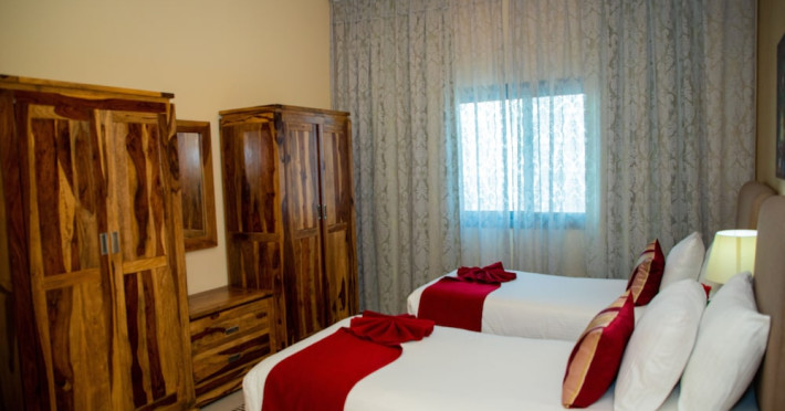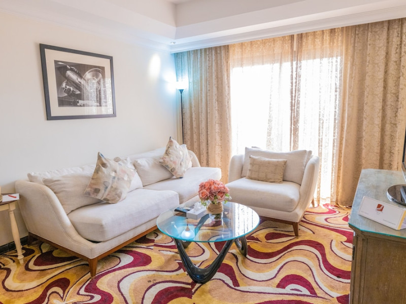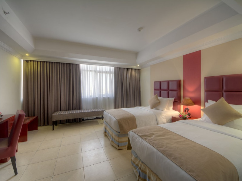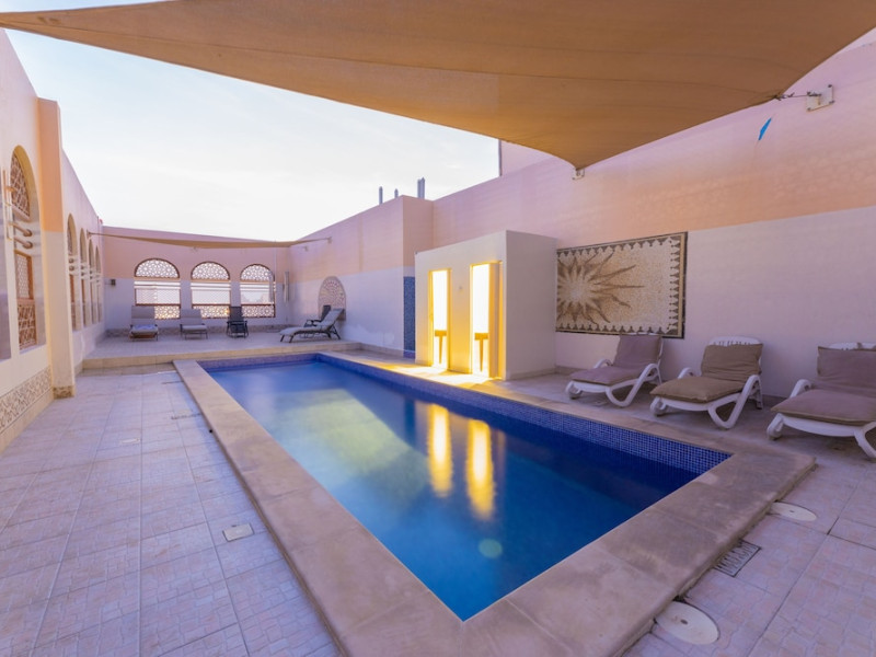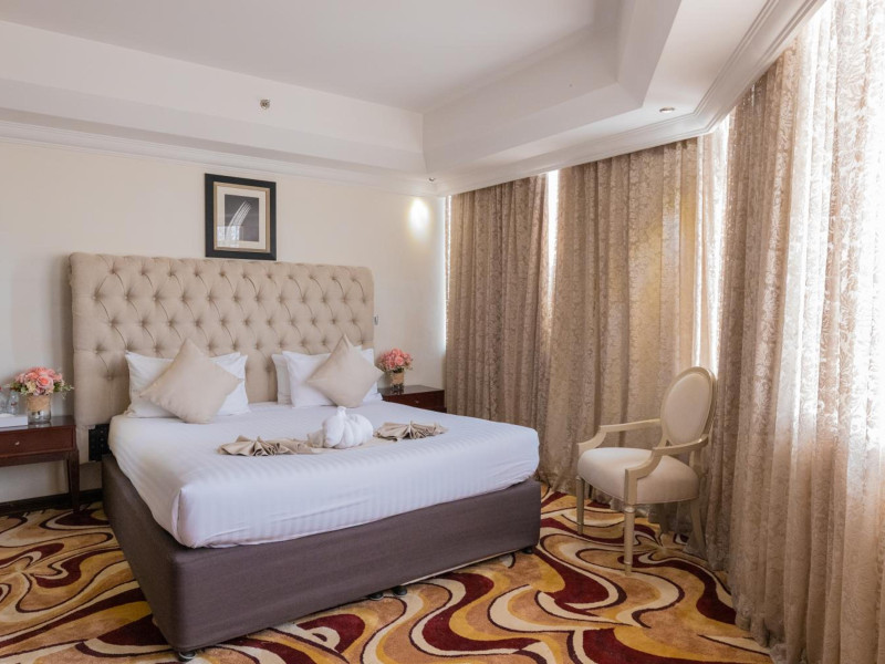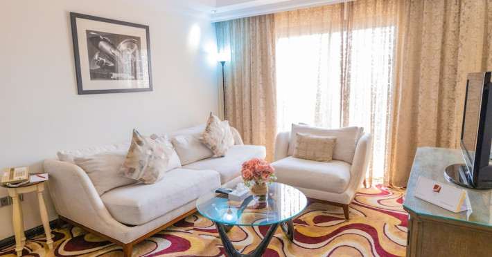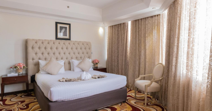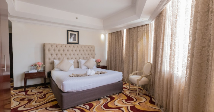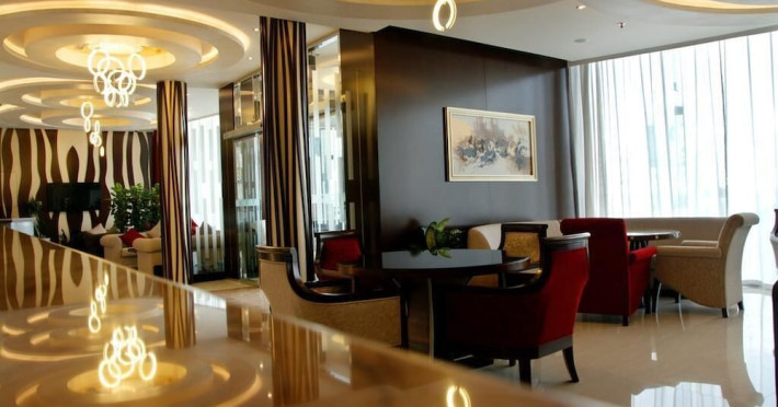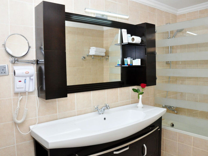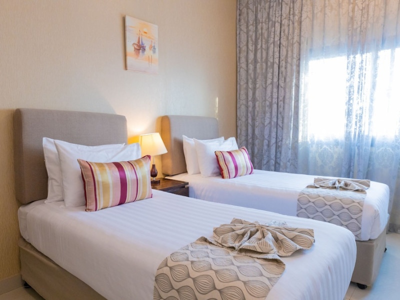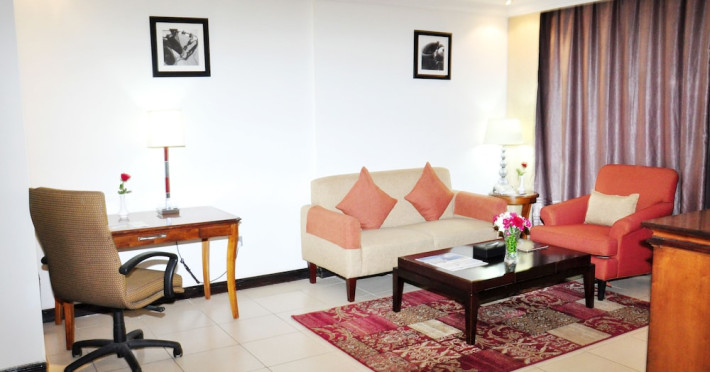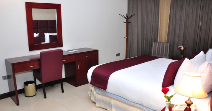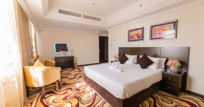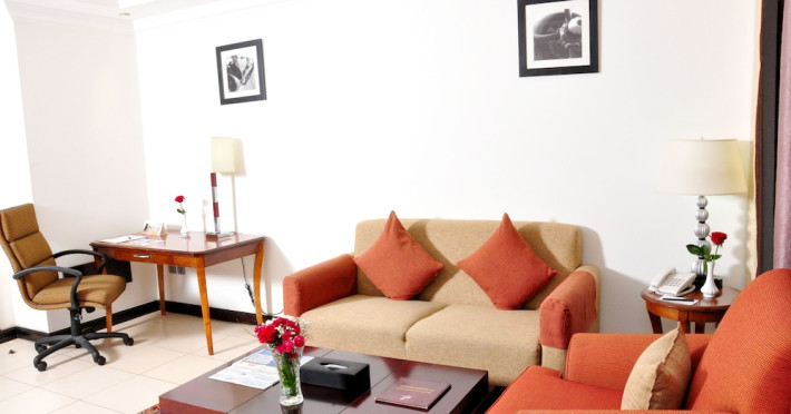 Ewan Ajman Suites Hotel offers modern suites with free Wi-Fi, air conditioning, LCD TVs, and kitchenettes. Located less than 20 km from Dubai and Sharjah International Airports, it's a 10-minute drive from Ajman Port Trust Authority and Hamriyah Free Zone Authority, and a 5-minute drive from Ajman Beach. The hotel features an outdoor pool, a hot tub, a fitness center, and a restaurant on the 13th floor with panoramic Ajman views, serving Lebanese cuisine and local specialties. Additional amenities include a 24-hour lobby café, in-room dining, a full-service spa offering massages, a sauna, concierge services, and free self-parking. Some suites have private balconies. Buffet breakfasts are available for a fee. The hotel offers express check-in/out, a business center, and event facilities. Airport shuttle service is available for a surcharge. City Centre Ajman is 1.7 km away. The Ewan Ajman Suites Hotel is a hotel.