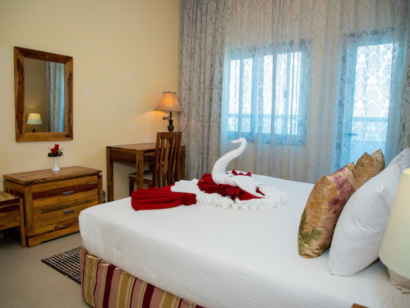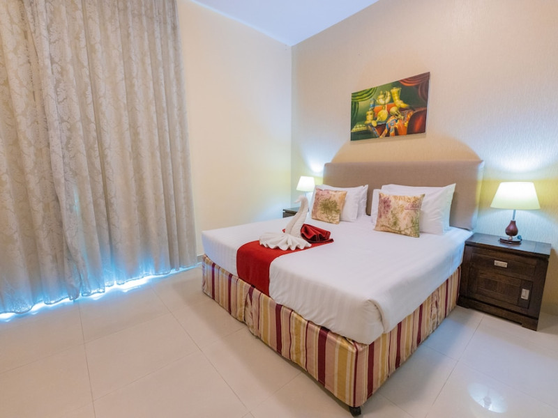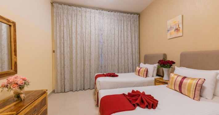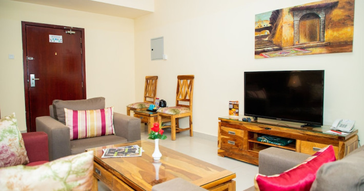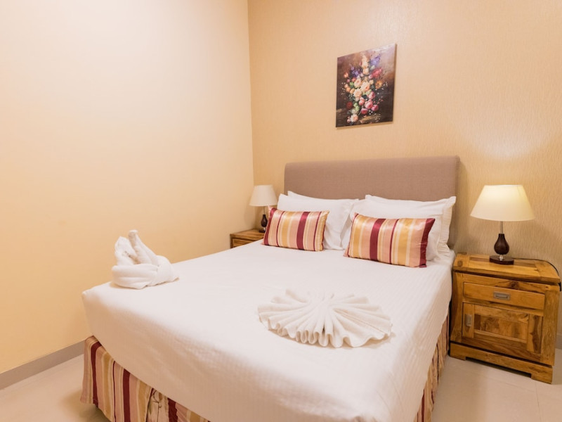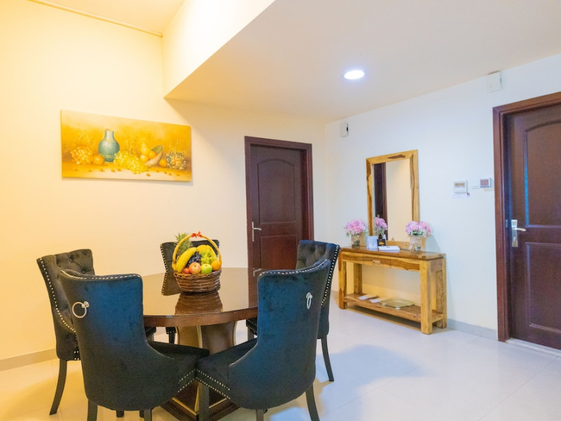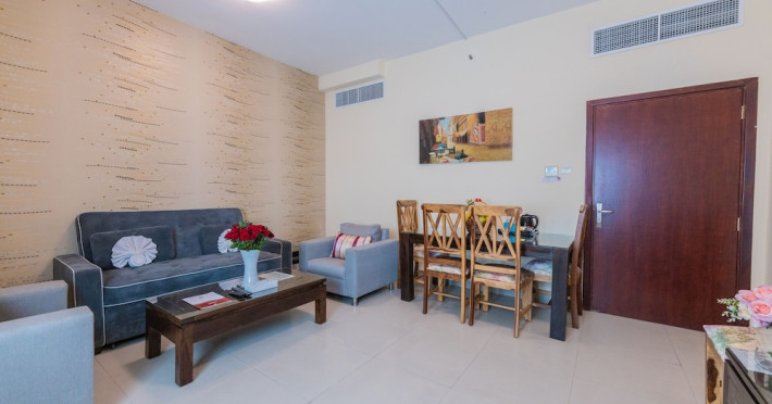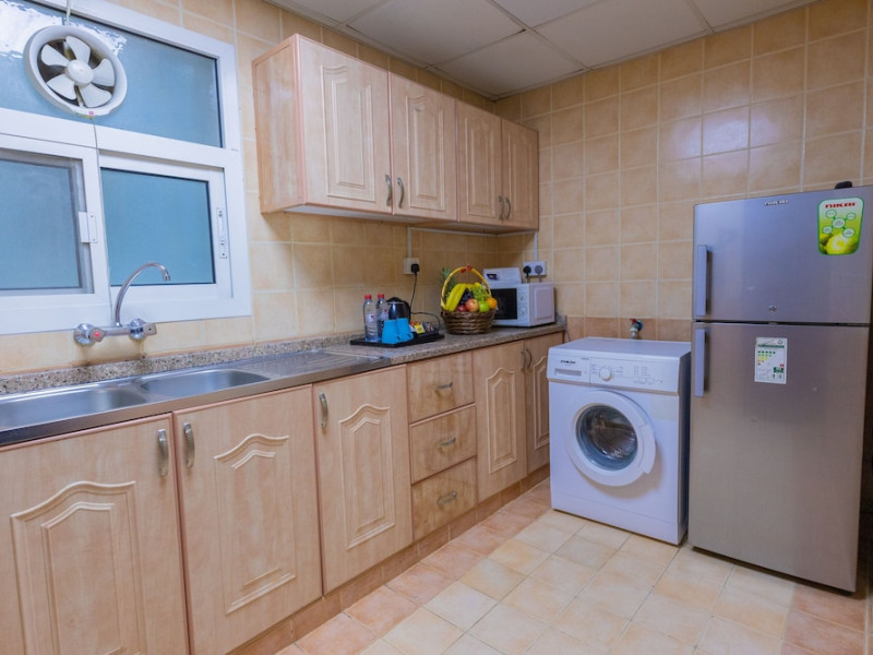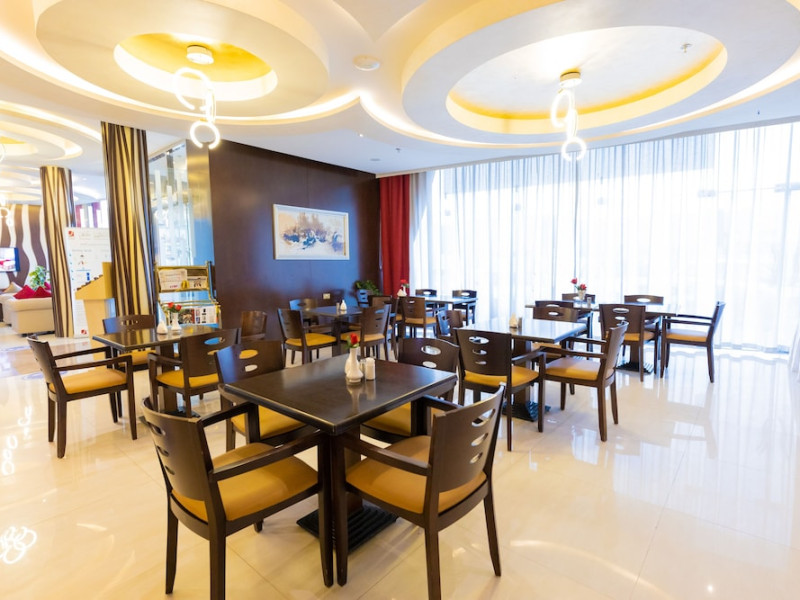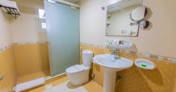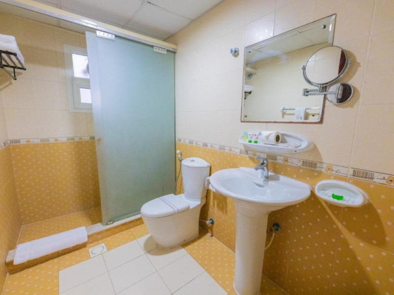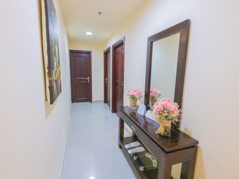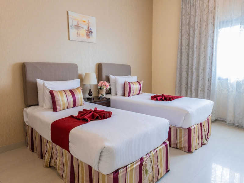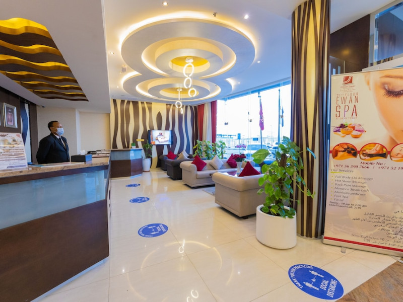 Ewan Tower Hotel Apartments in Ajman offers 120 air-conditioned rooms with kitchens featuring full-sized refrigerators/freezers and stovetops. Each room includes a private balcony, 42-inch LED TV with satellite channels, free Wi-Fi, a phone, safe, and desk. Some rooms offer city views and/or a terrace. Amenities include a fitness center, a full-service spa offering massages, body treatments, and facials, a restaurant, a coffee shop/cafe, 24-hour room service, a business center, concierge services, and free self-parking. A paid airport shuttle is available 24 hours. Buffet breakfasts are available daily for a fee (7:00 AM to 10:30 AM). The hotel is conveniently located near Ajman Fish Market and City Centre Ajman, and within a reasonable distance of several other attractions including Ajman Museum, Ajman China Mall, and Sharjah International Airport. Additional services include complimentary newspapers, dry cleaning/laundry services, currency exchange, and a 24-hour front desk. Allergy-free rooms are available. The Ewan Tower Hotel Apartments is a hotel.