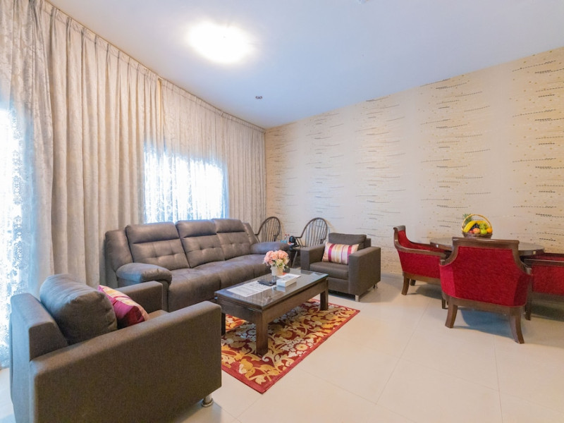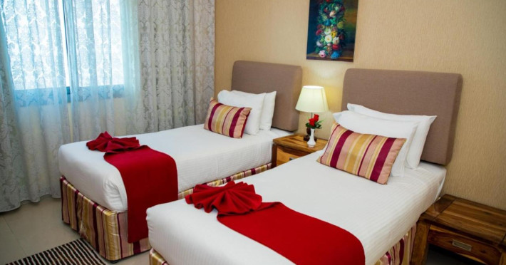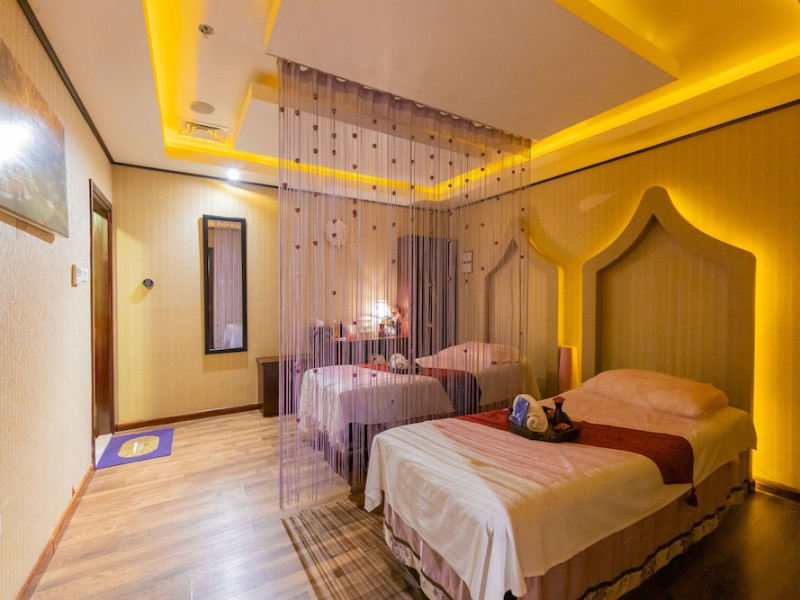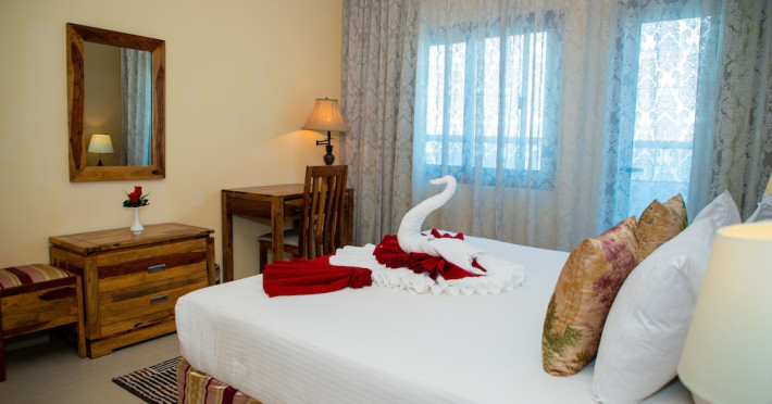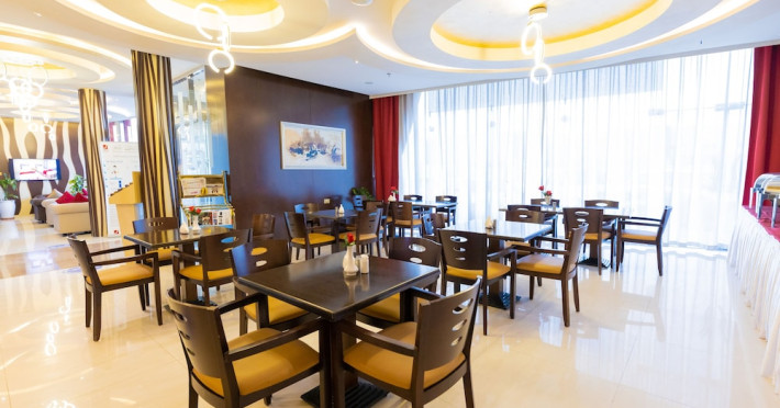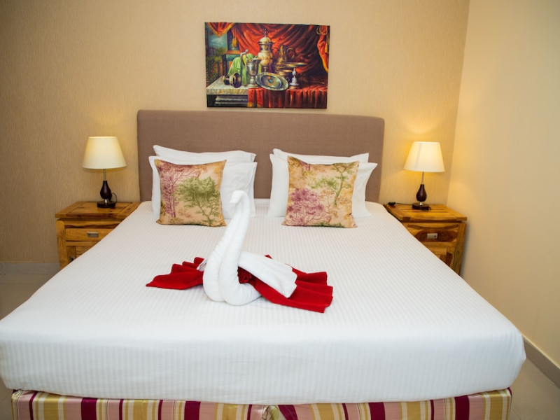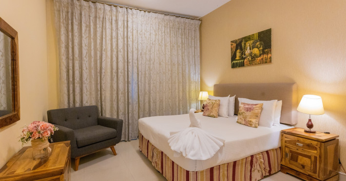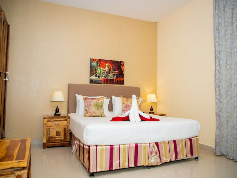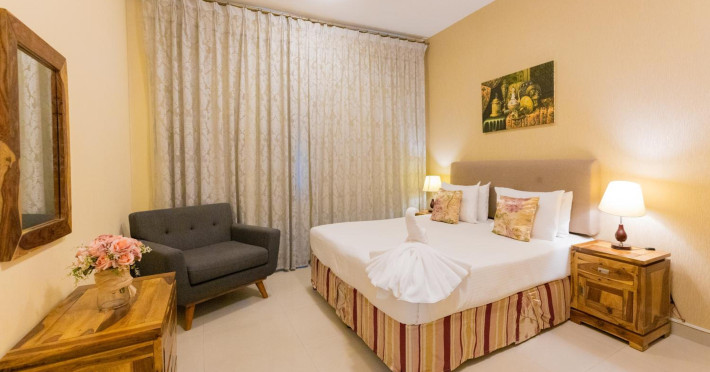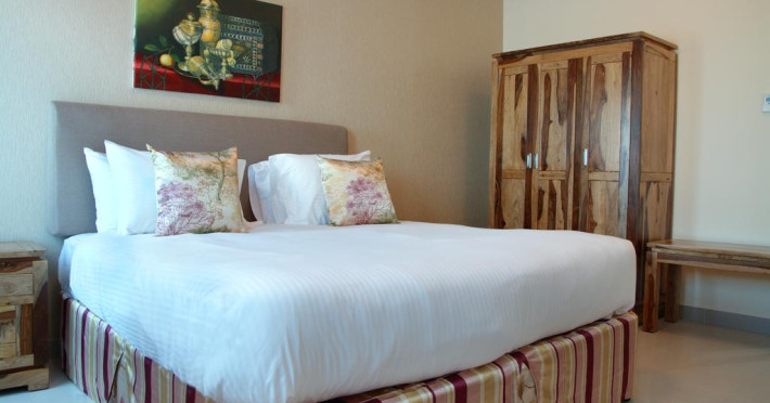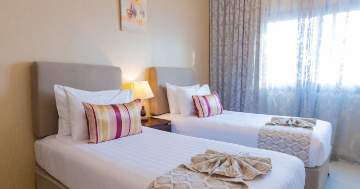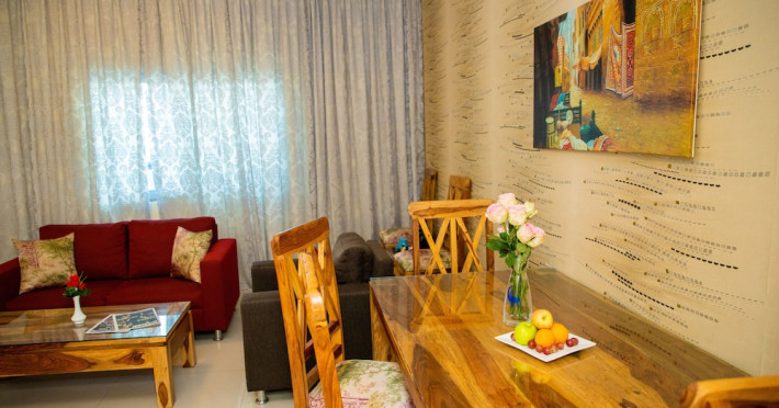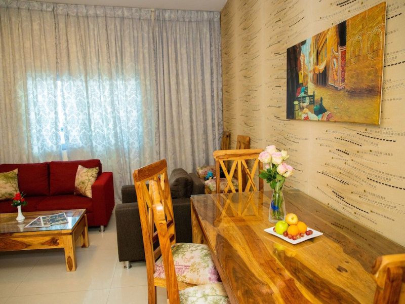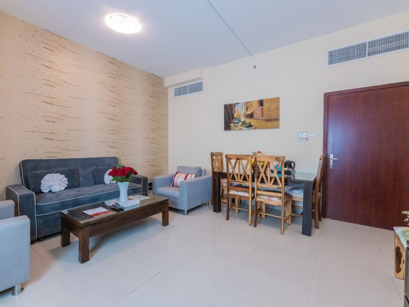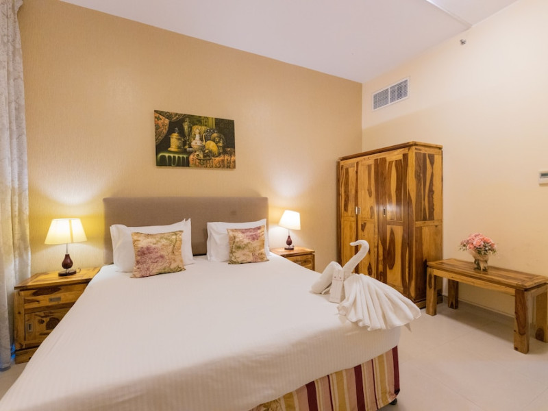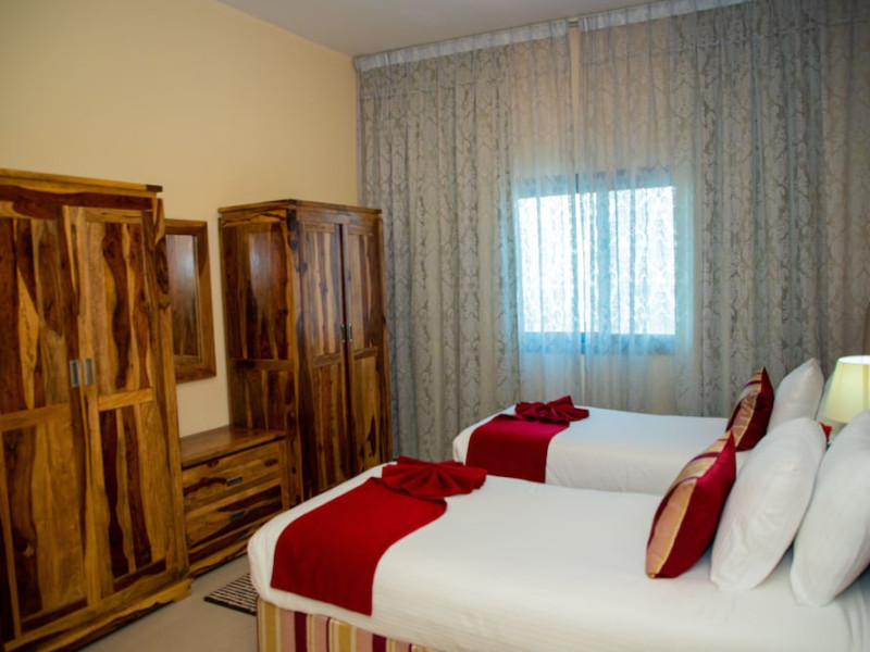 Ewan Tower Hotel Apartments in Ajman offers 120 air-conditioned rooms with kitchens featuring full-sized refrigerators/freezers and stovetops. Each room includes a private balcony, 42-inch LED TV with satellite channels, free Wi-Fi, a phone, safe, and desk. Some rooms offer city views and/or a terrace. Amenities include a fitness center, a full-service spa offering massages, body treatments, and facials, a restaurant, a coffee shop/cafe, 24-hour room service, a business center, concierge services, and free self-parking. A paid airport shuttle is available 24 hours. Buffet breakfasts are available daily for a fee (7:00 AM to 10:30 AM). The hotel is conveniently located near Ajman Fish Market and City Centre Ajman, and within a reasonable distance of several other attractions including Ajman Museum, Ajman China Mall, and Sharjah International Airport. Additional services include complimentary newspapers, dry cleaning/laundry services, currency exchange, and a 24-hour front desk. Allergy-free rooms are available. The Ewan Tower Hotel Apartments is a hotel.