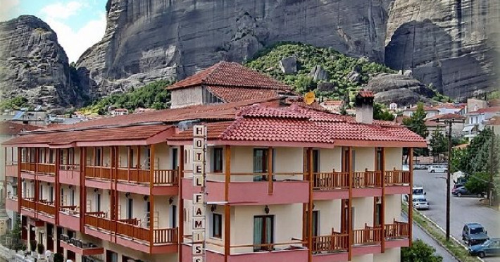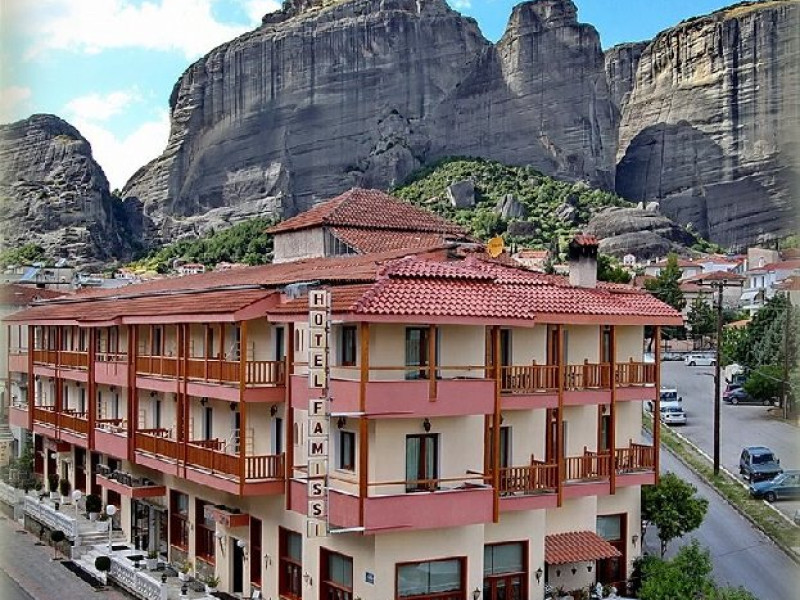 Localizare: La poalele stancilor, in orasul Kalambaka, la 22 km de orasul Trikala, 219 km de Salonic, 231 km de aeroportul international din Salonic. Tipul de masa: Bed and Breakfast, Half Board. Hotelul dispune de un total de 46 de camere: Singles, Doubles, Triples. Facilitati camera: Aer conditionat, incalzire, TV prin satelit, telefon, cada/dus, uscator de par, radio, acces gratuit la internet Wi-Fi, balcon, vedere la Meteora. Facilitati hotel: Servicii zilnice de menaj; schimbarea lenjeriei - de 2/3 ori pe saptamana. Internet,Wi-Fi gratuit in lobby si in camere, TV, Seif la receptie - gratuit, Serviciu 'apel de trezire', bar, restaurant Pagina web: www.famissihotel.com