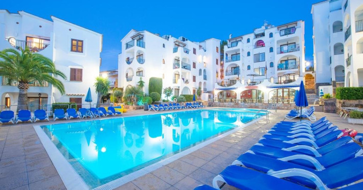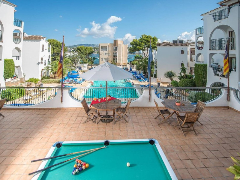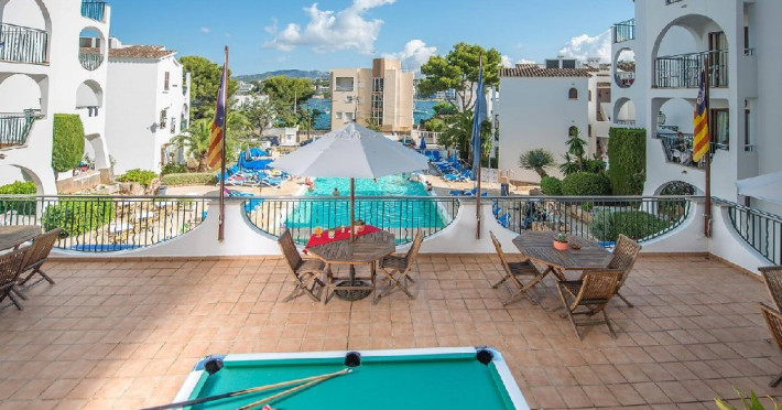 Facilitati FLIP FLOP SANTA PONSA APARTMENTS: Hotelul pune la dispozitia turistilor: restaurant bufet, bar, piscina exterioara cu terasa pentru plaja cu sezlonguri si umbrele, piscina pentru copii, receptie 24h, camera pentru bagaje, Wi-Fi (contra cost).