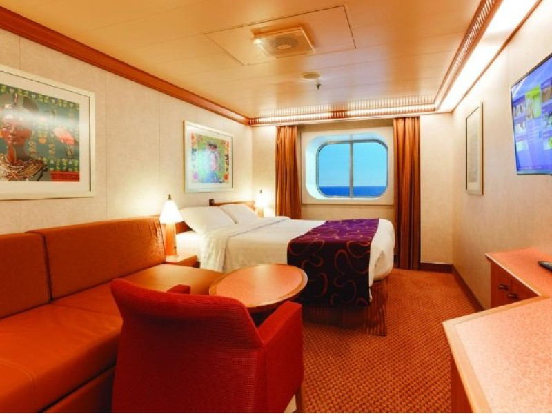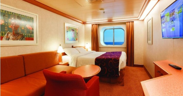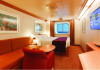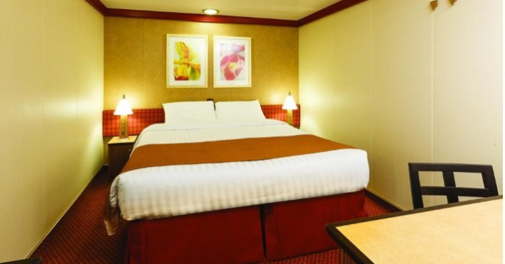Cabina exterioara Aceste cabine sunt prevazute cu un pat dublu convertibil in doua paturi (la cerere), aer conditionat, baie cu dus, televiziune interactiva, conexiune prin cablu la internet (contra cost), telefon, minibar si seif.