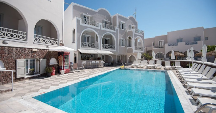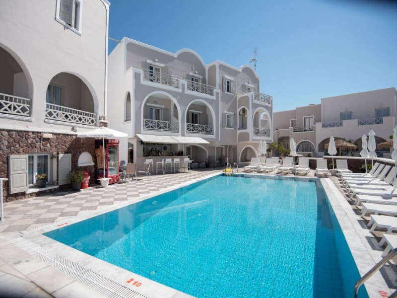 Localizare  HOTEL FOMITHEA: Hotelul se afla in Kamari, una dintre cele mai cunoscute si apreciate statiuni din Santorini. Hotelul este situat la 150 m de plaja, 3 km de aeroport, 7 km de Thira. In imediata apropiere a hotelului, la aprox. 100 m se afla statia de autobuz.