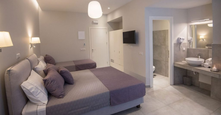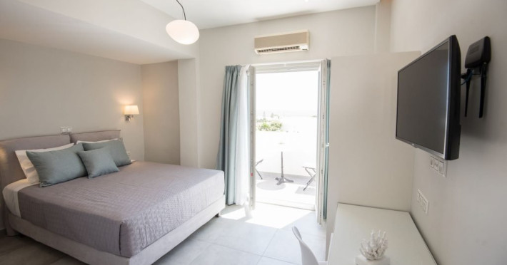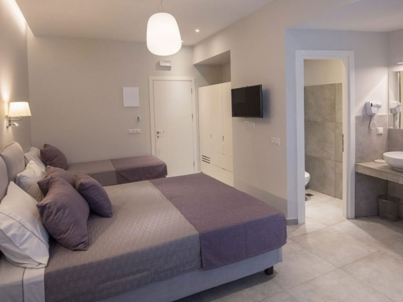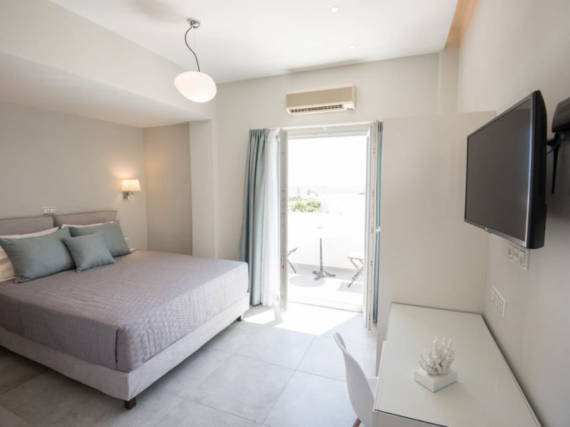 Descriere HOTEL FOMITHEA: Hotelul a fost renovat in totalitate in anul 2017 si a fost construit si decorat in stitul traditional al faimoasei insule Santorini. In urma renovarii, hotelul a primit premiul Blue Flag, certificandu-se astfel faptul ca este un hotel de tip eco. Hotelul dispune de 13 camere duble sau triple si 20 studiouri echipate cu kitchineta.