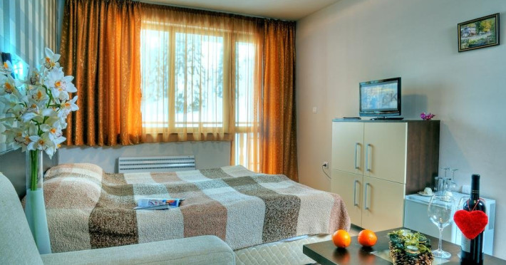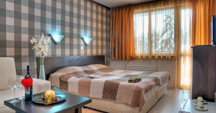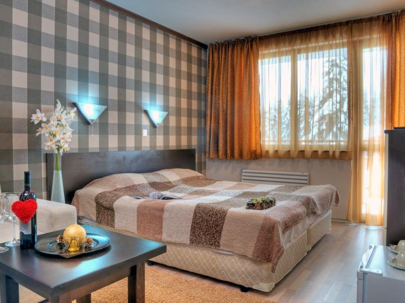 Localizare: Hotelul Forest Nook este special conceput ca loc natural pentru recreere si divertisment, situat printre padurile vesnic verzi din Rodopi, unde va puteti bucura atat de sporturi de vara, cat si de iarna si de divertisment turistic. Facilitati hotel: Hotelul pune la dispozitia clientilor 2 receptii, 2 restaurante (taverna si restaurant), bar, zona de relaxare (piscina interioara, sauna, baie de aburi, jacuzzi, centru de fitness), sala de conferinte (150 de locuri), gratar, loc de joaca pentru copii, cinema, sala de jocuri (biliard, tenis de masa, fotbal de masa, hochei pe gheata), mini supermarket, restaurant pe partiile de schi, mini pista privata langa hotel pentru sanius, parcare. Dotari camera: Camerele sunt echipate cu Wifi, TV, mini bar, balcon, chicineta utilata si zona de luat masa, baie cu dus sau cada, articole de toaleta, uscator de par, parcare.
