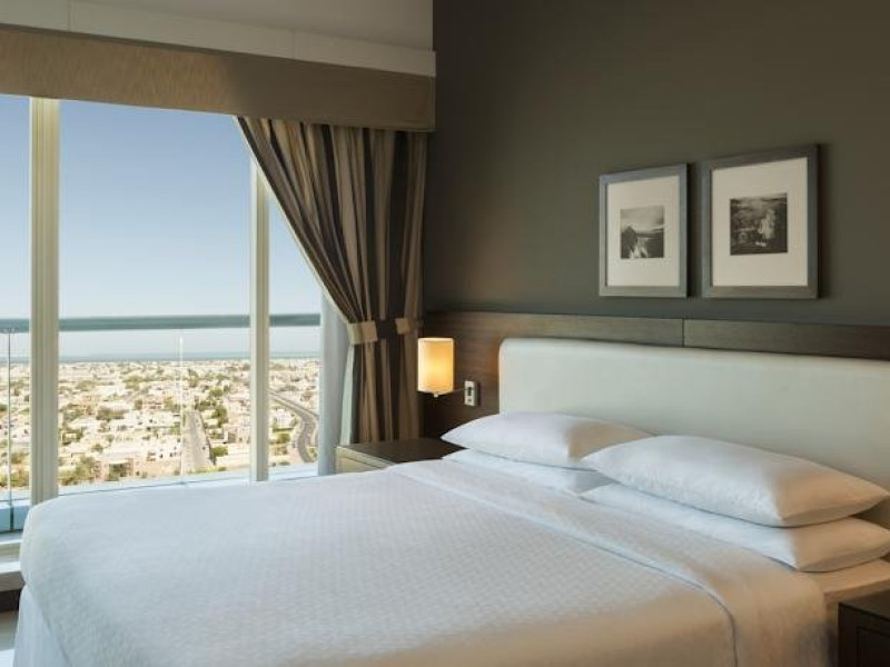 Dotari camere: Four Points by Sheraton Sheikh Zayed Road ofera unitati de cazare spatioase, cu aer conditionat. Acestea au ferestre din podea pana in tavan, TV LCD interactiv de 32 inch si zona de relaxare. De asemenea, includ minibar si birou.