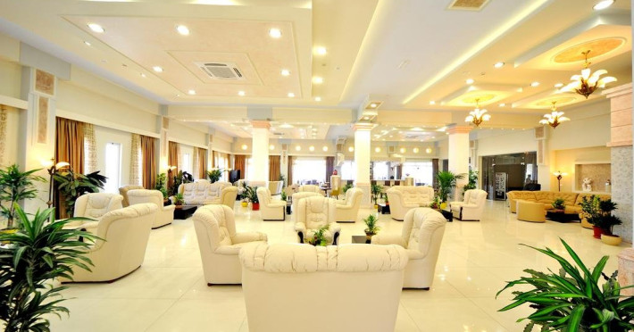 Facilitati hotel: restaurant cu un bufet generos, bar, 3 piscine pentru adulti, 3 piscine pentru copii, 1 piscina pentru bebelusi, centru spa cu piscina interioara, centru fitness, 2 saune, teren de tenis, tenis de masa, acces internet Wi-Fi, loc de joaca pentru copii. Tip masa: all inclusive: mic dejun, pranz si cina bufet, gustari intre mese, bauturi alcoolice si racoritoare locale neimbuteliate.