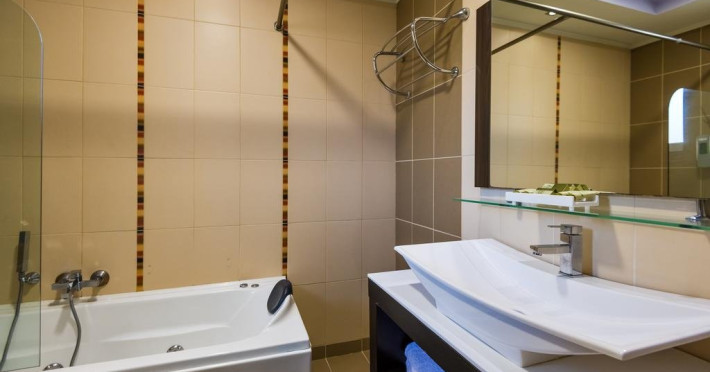 Dotari camere: camerele duble au 25 m2 sunt elegante, moderne si dispun de aer conditionat, televizor, telefon, seif, acces internet wireless, baie cu Jacuzzi, balcon/terasa. Camerele family au 40 m2 si doua dormitoare.