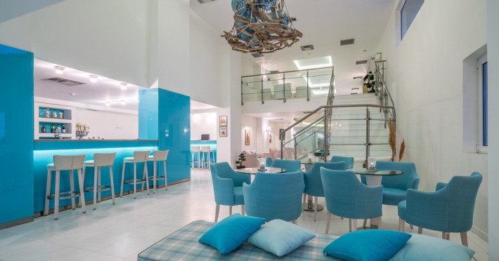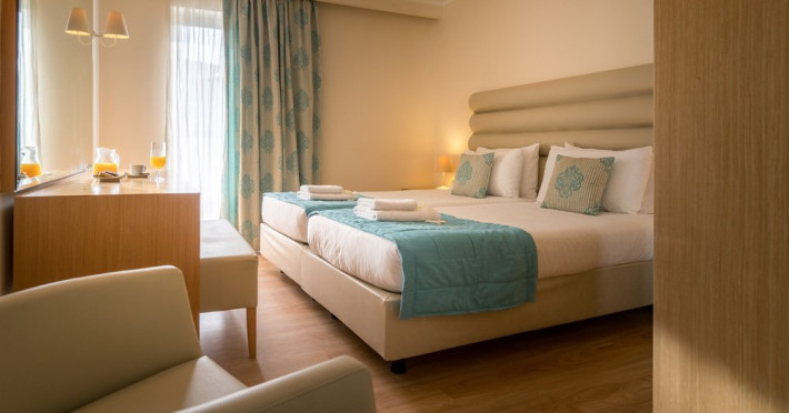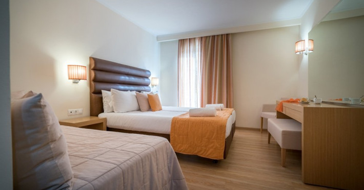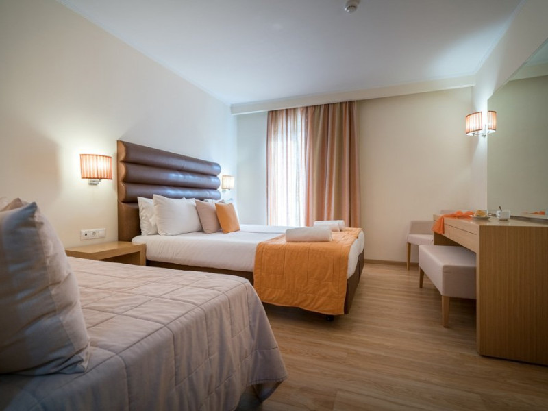 Dotari camere: Tipuri de camera: camera standard (in care se pot caza 2 adulti sau maxim 2 adulti cu 2 copii), camera superioara cu vedere la mare & camera deluxe (in care se pot caza maxim 2 adulti), camera suita superioara (in care se pot caza 2-4 adulti sau maxim 2 adulti cu 2 copii) toate camerele fiind dotate cu baie, uscator de par, seif- contra cost, internet, telefon, televizor, Toate camerele sunt curatate de 7 ori pe saptamana, lenjeria de pat si prosoapele sunt schimbate de 3 ori pe saptamana.