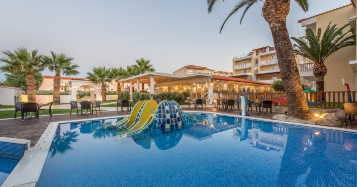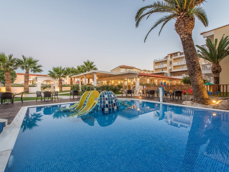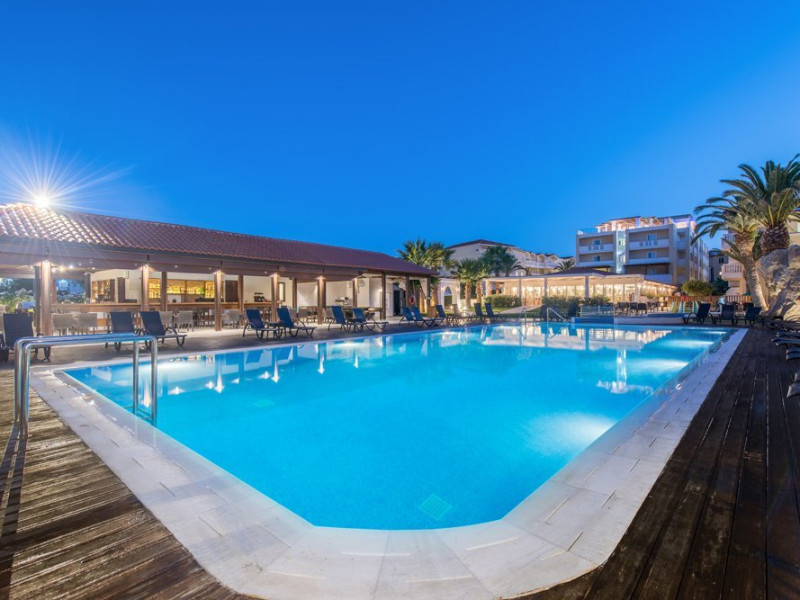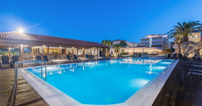 Tip masa: All inclusive (mic dejun, pranz si cina tip bufet) Localizare hotel GALAXY: situat pe plaja din Laganas, doar la 500 de m de centrul statiunii, la 6 km de aeroportul din Zakynthos si la 8 km de Orasul si portul Zakynthos.