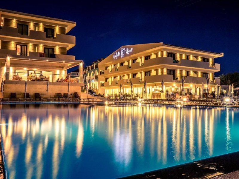 Descriere: Gardelli Resort este un hotel renovat in 2023 situat chiar in centrul statiunii Laganas. Tip masa: conform ofertei Localizare: In statiunea Laganas, la 8 km distanta fata de aeroport. Plaja: publica cu nisip la 50 m de hotel. Facilitati generale: receptie, lobby, WIFI gratuit in zonele publice, piscina exterioara cu sectiune pentru copii, sezonguri si umbrelute gratuite la piscina, pe plaja si pe gazon contracost, prosoape de plaja si piscina cu depozit, parcare privata cu plata, transfer de la/la aeroport cu plata, restaurant, bar. Dotari camere: balcon sau terasa, aer conditionat cu plata, Wifi, seif cu plata, TV satelit, fierbator pentru ceai si cafea, uscator de par, frigider, telefon. Servicii cu plata: spalatorie, Facilitati copii: baby cot la cerere. Pagina web: https://www.gardelliresort.com/facilities Nota informativa: Pentru anumite facilitati din hotel sau din camera, hotelierul poate solicita taxe suplimentare. In momentul sosirii la hotel solicitati receptionerului sa va informeze cu exactitate asupra lor. Taxa locala se plateste la receptie.