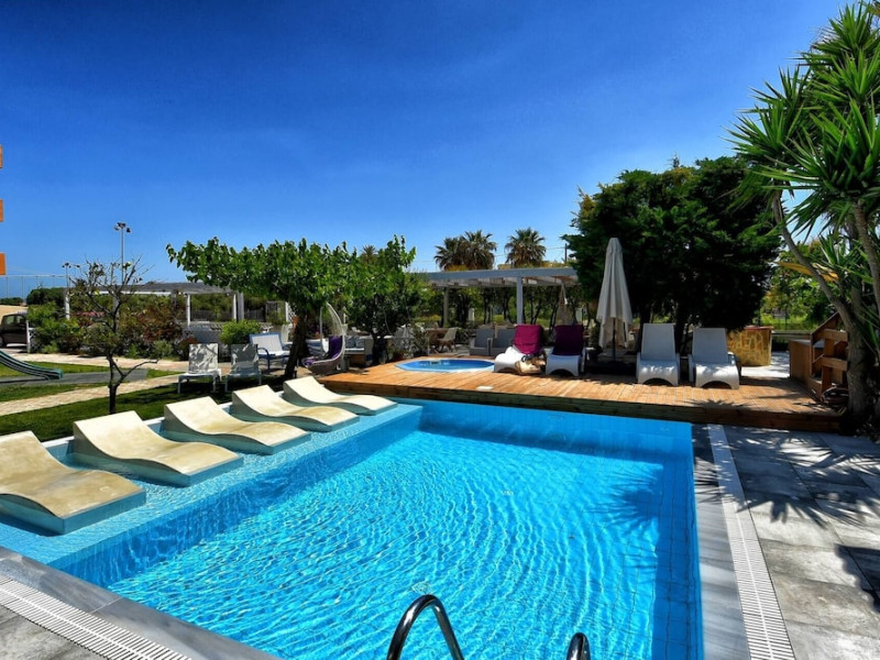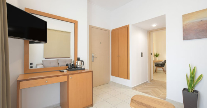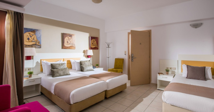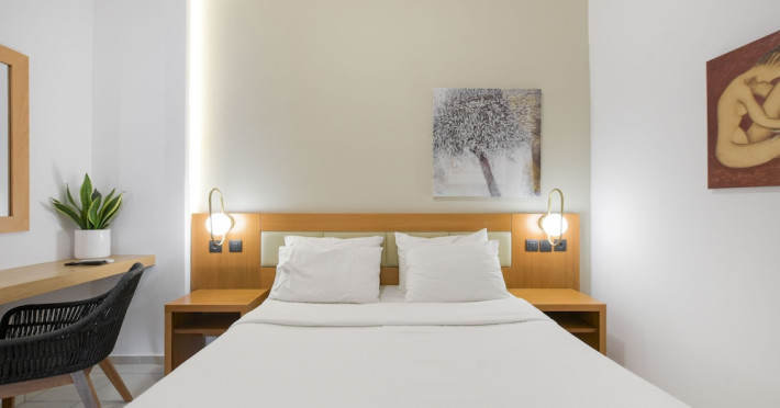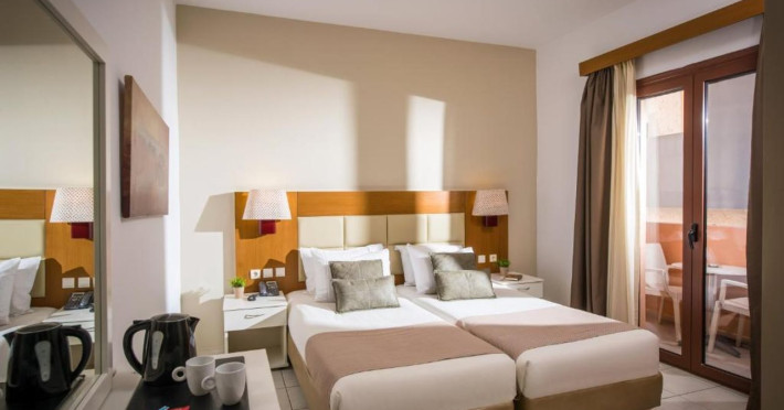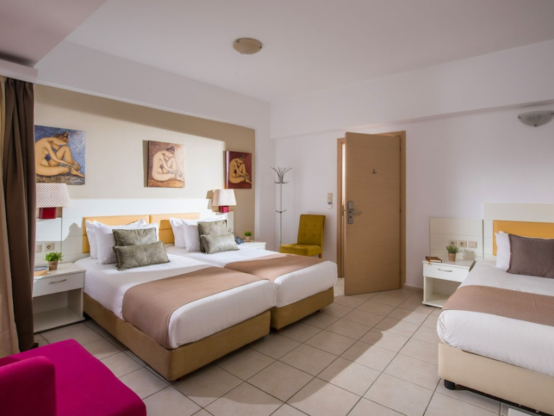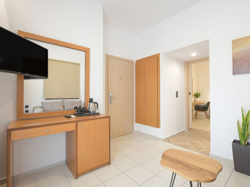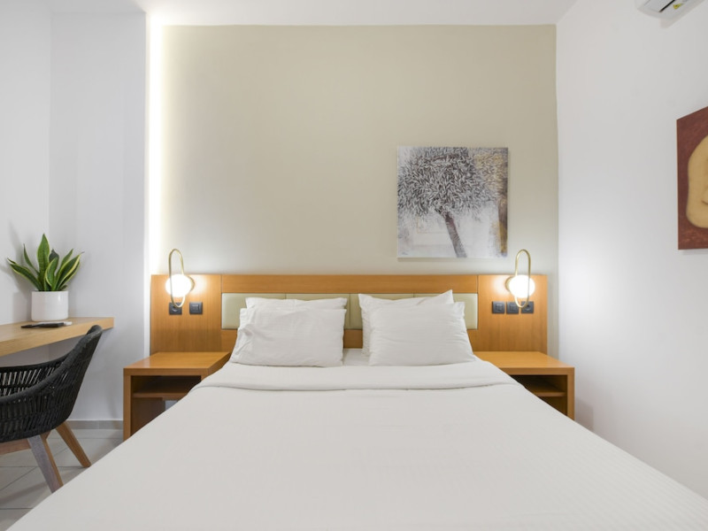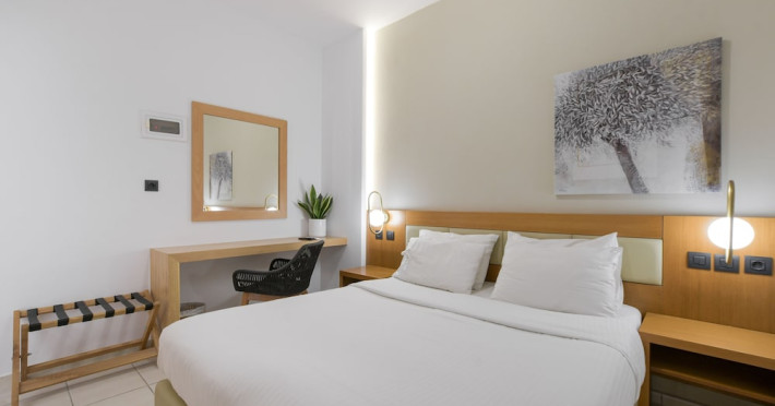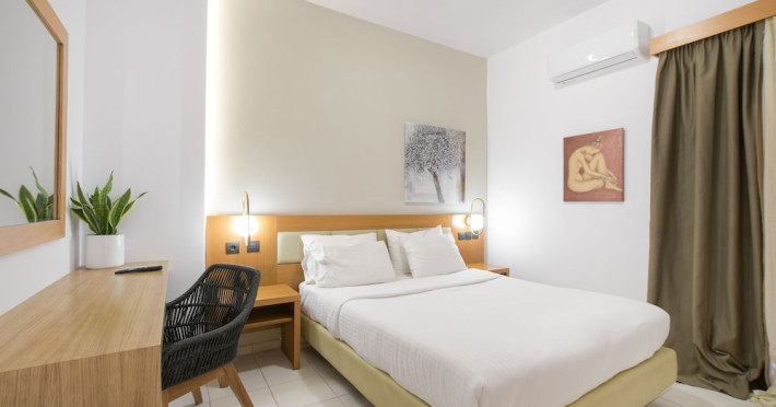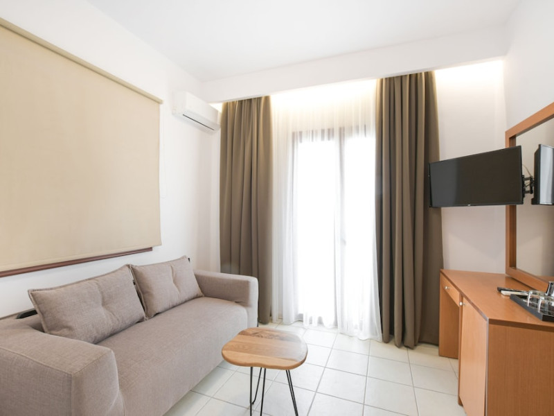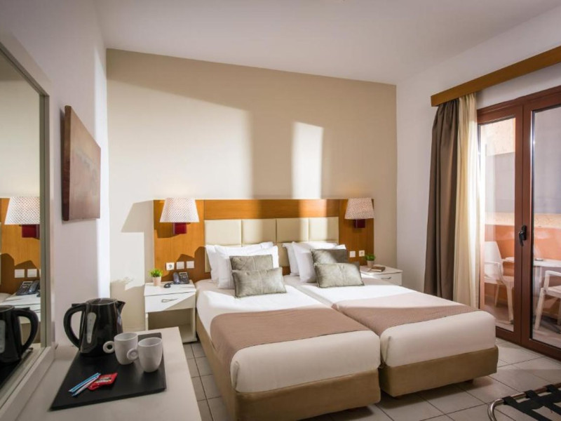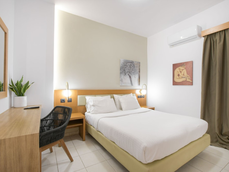 The 2-star hotel features an on-site restaurant, a coffee shop/cafe, and a bar/lounge, as well as a poolside bar. Guests can enjoy an outdoor pool, a terrace, and a garden. Complimentary wireless internet access is available. The air-conditioned rooms include flat-screen televisions with satellite programming, desks, blackout drapes/curtains, and phones with free local calls. Private bathrooms offer complimentary toiletries and hair dryers. Rooms are also equipped with an iron, ironing board, and a minibar. Hotel amenities include a 24-hour front desk, concierge service, dry cleaning/laundry services, laundry facilities, safe (extra charge) and tour/ticket assistance. The hotel offers an airport shuttle service and welcomes pets. Disabled facilities are available, including wheelchair access and disabled parking spaces. Free self parking is available onsite. Nikos Kazantzakis Airport (HER) is approximately 11.4 km away.