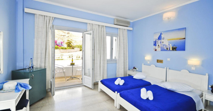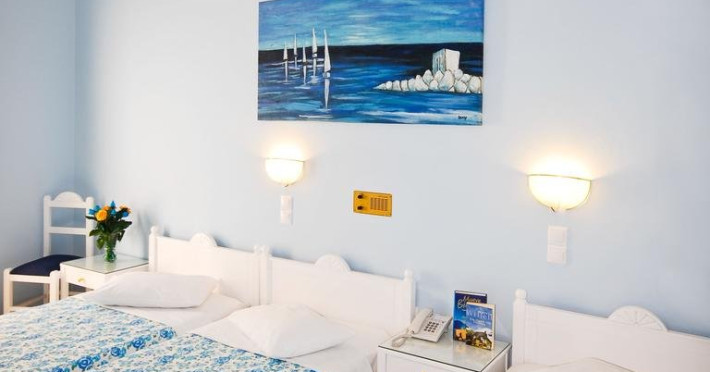 Descriere HOTEL GLAROS: Este un hotel ce dispune de 25 camere in stilul traditional cicladic, luminoase si spatioase, oferind oaspetilor sai o multitudine de facilitati.