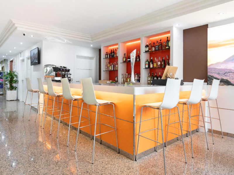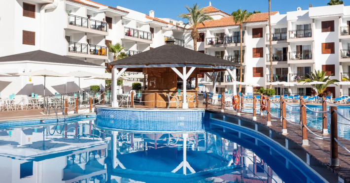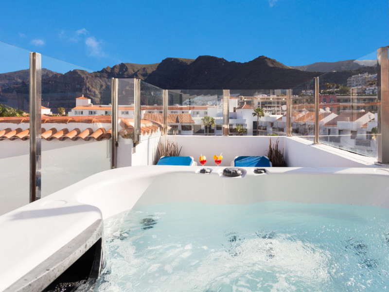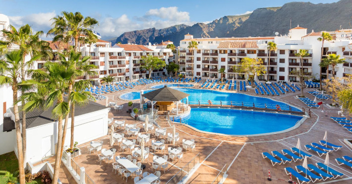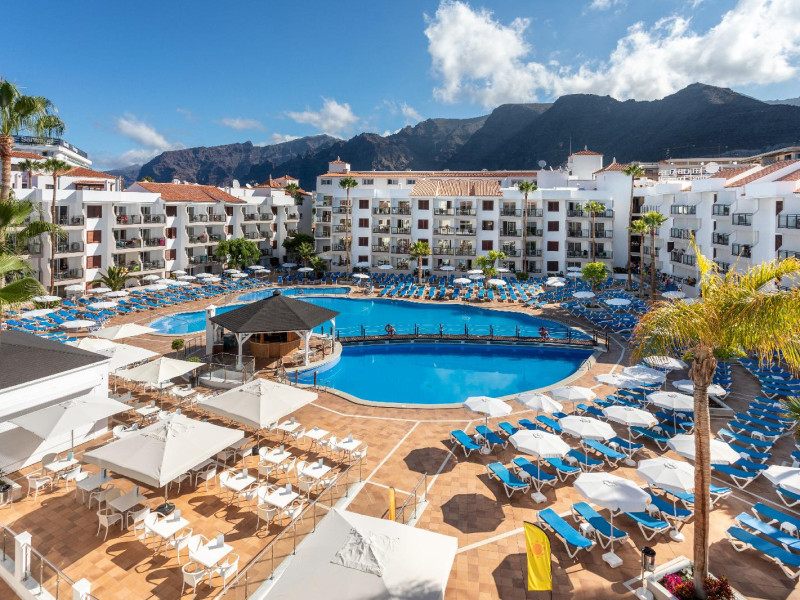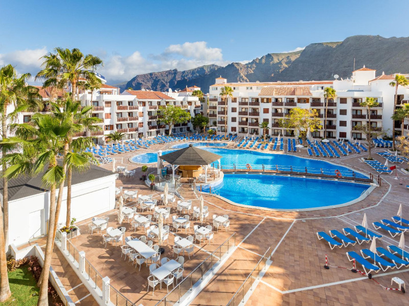 This beautiful hotel is situated overlooking the Atlantic Ocean close to the impressive cliffs of Los Gigantes, in Santiago Del Teide. The Teide National Park can be reached within a short drive and the airport is about 35 minutes' drive. The beach is 1km away, the city centre and numerous shops, restaurants, bars and cafés are within walking distance. It features outdoor swimming pools, one children's pool and a variety of sports facilities. Guests can enjoy a delicious meal in the onsite restaurant. The rooms are decorated with light colours and are well equipped with all the essential amenities needed to have a comfortable holiday.In the well-tended, tropical garden area, guests will find 2 swimming pools with separate children's paddling areas, a poolside snack bar, sun loungers and parasols (for an additional fee). Sport activities: tennis, ping-pong, (billiard with charge). Buffet for children.