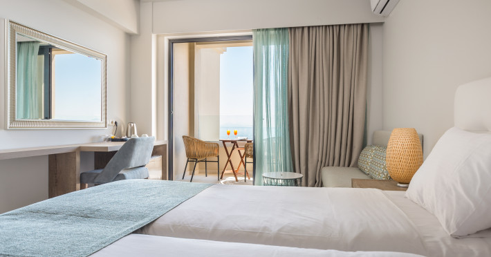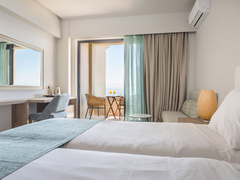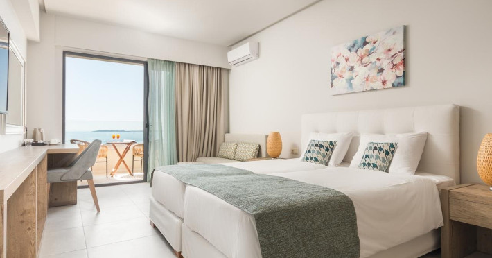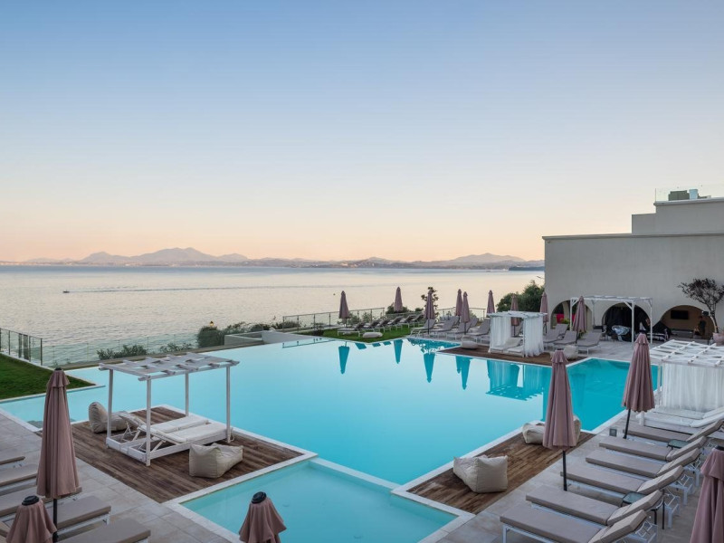 Golden Mare Resort is a beach resort in Corfu, ideal for memorable island holidays. The reception is staffed 24 hours a day and luggage storage is available. Guests can relax by the onsite swimming pool. The hotel also features a kids club. Wi-Fi internet access is available throughout the property and car parking is onsite. The hotel is located near Pantokratoras Mountain and offers a marvelous view over Corfu old town, the Venetian fortress and the far Albanian mountains. Guest rooms are equipped with TV, air conditioning, safe and minibar. The ensuite bathroom features a hairdryer. Guests can enjoy meals at the onsite restaurant. Drinks can be served at the lobby bar, roof bar or at the pool side bar. Spa facilities (extra charge).