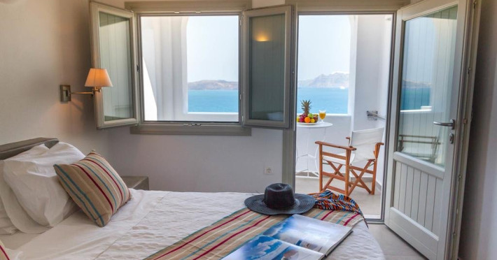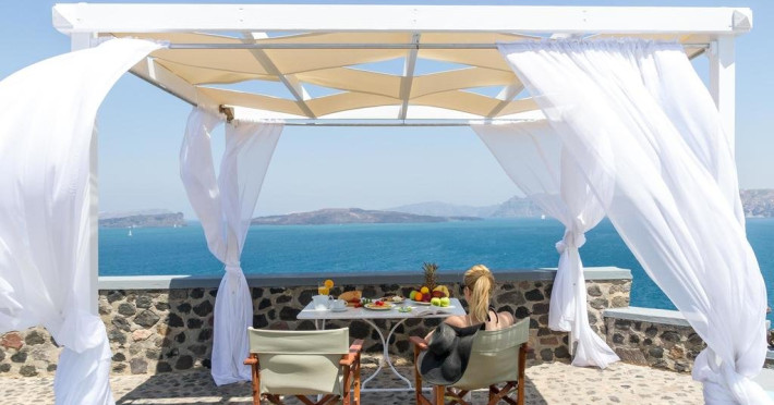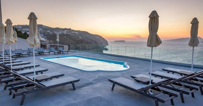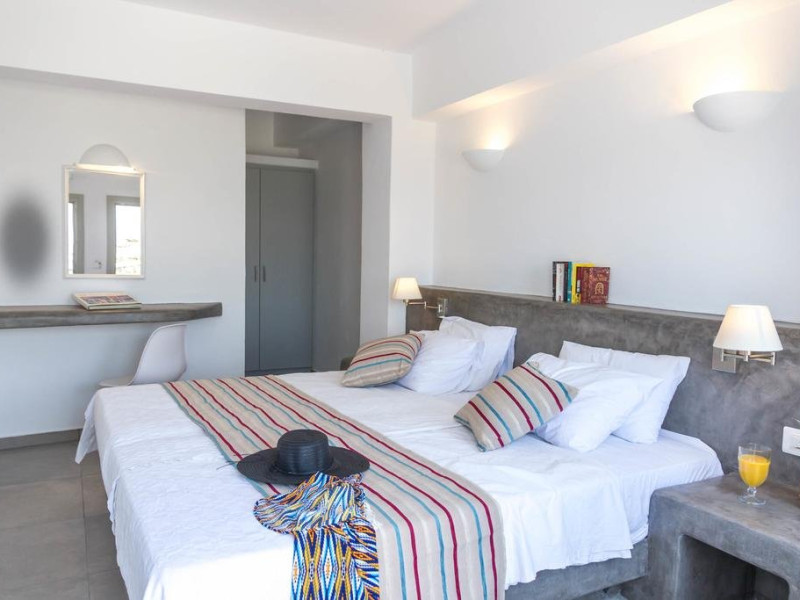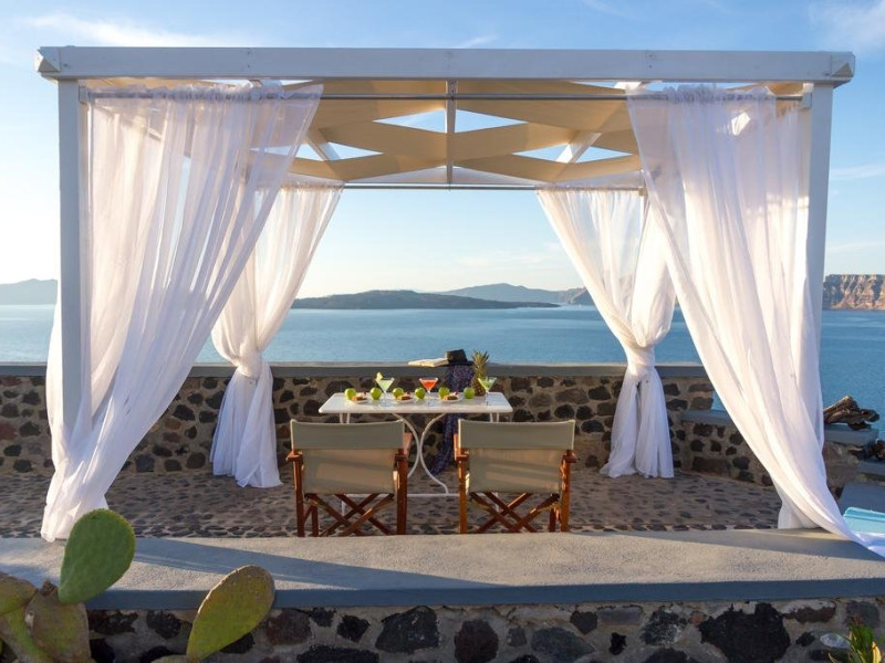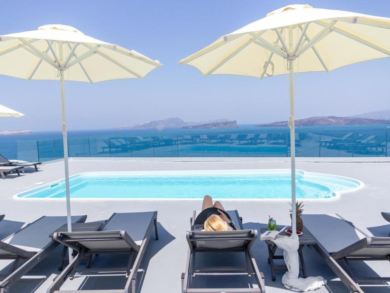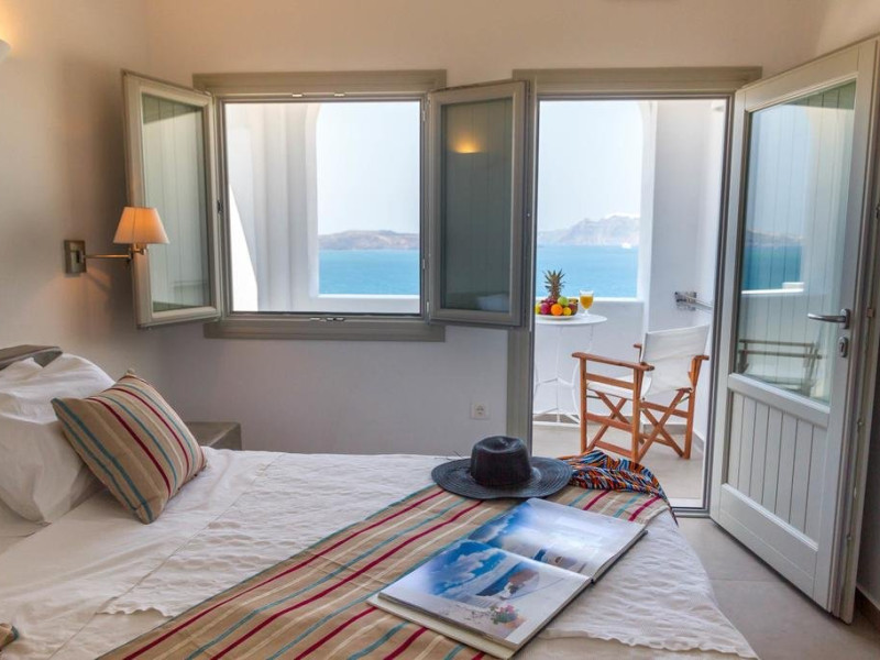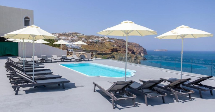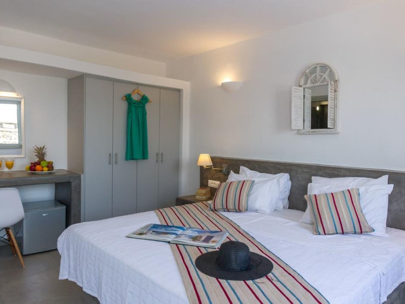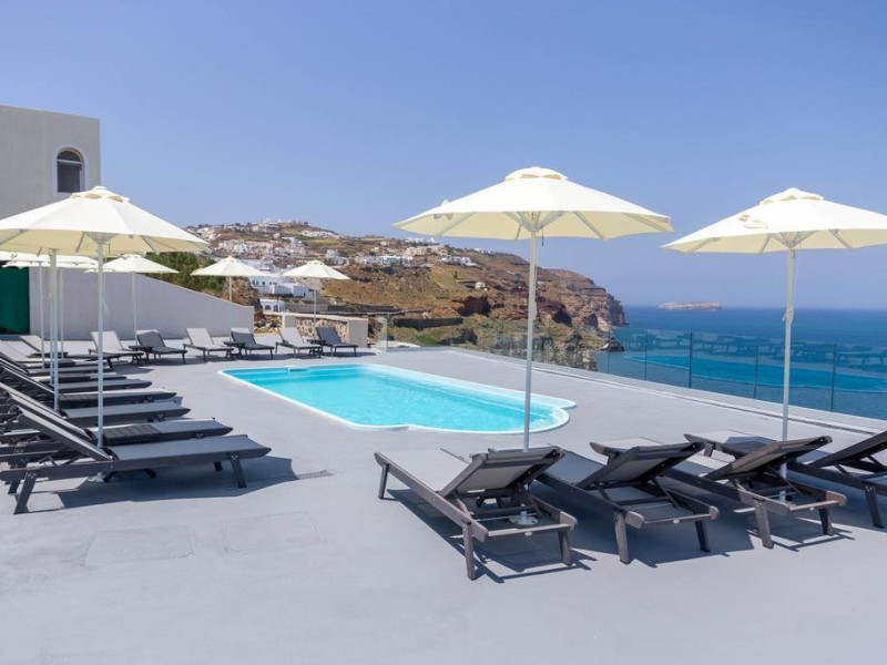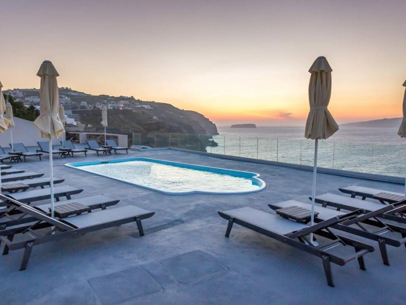 Descriere HOTEL GOULIELMOS: Aceasta proprietate speciala si prietenoasa dar fara pretentii deosebite se afla la 20 minute de mers pe jos fata de cea mai apropiata plaja. Situat pe o stanca, hotel Goulielmos este construit in stil traditional si se afla la 500 de metri de plaja si de statiunea Akrotiri. Spatiile de cazare sunt decorate cu bun gust si majoritatea dispun de terasa sau balcon cu vedere la gradina sau caldera si insulele vulcanice.