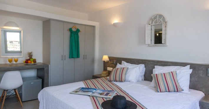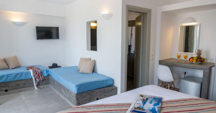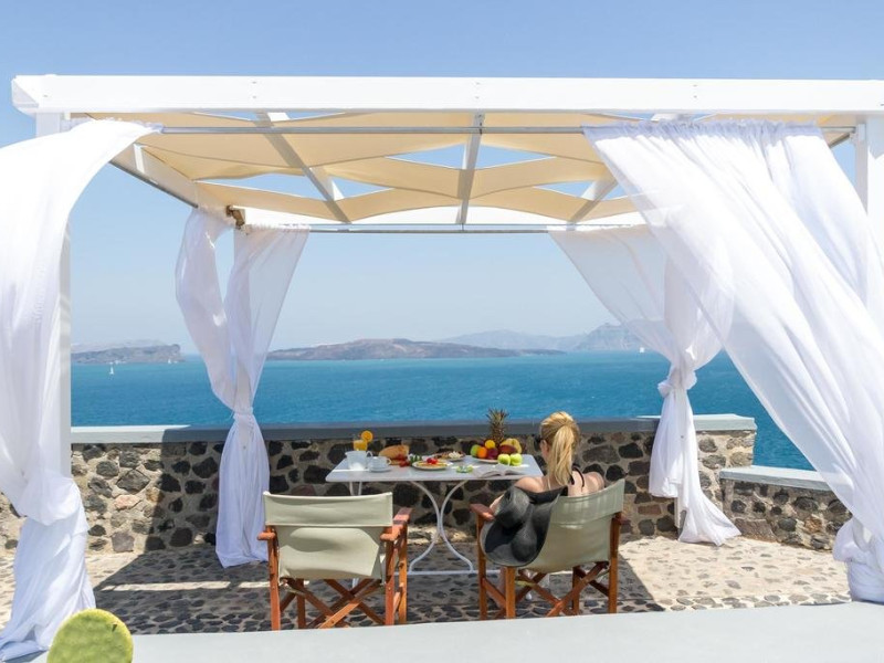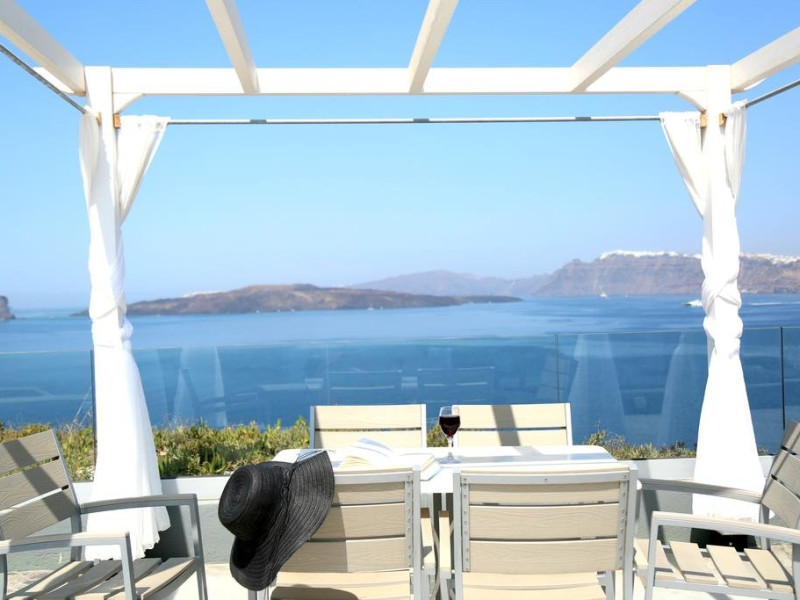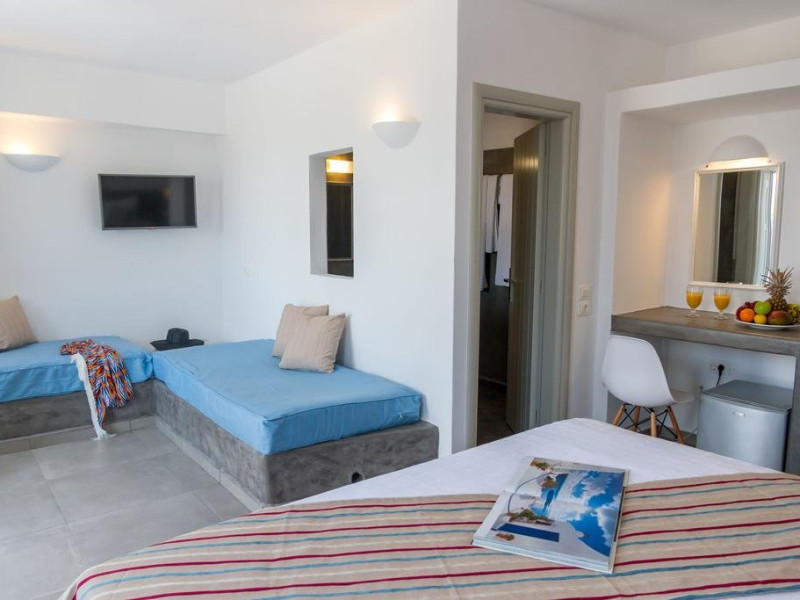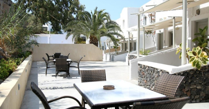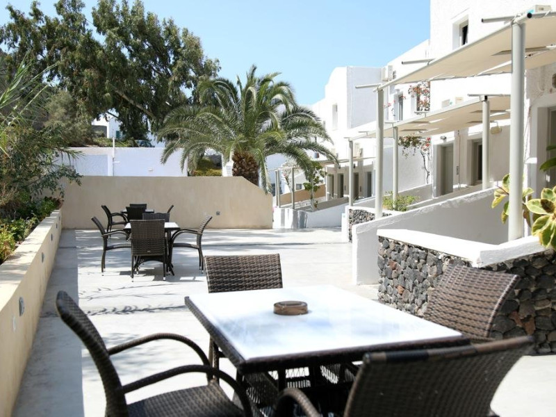 Localizare HOTEL GOULIELMOS: Faimoasa plaja Rosie este la 2,5 km de Hotelul Goulielmos. Orasul plin de viata Fira se afla la mai putin de 15 minute de mers cu masina. Portul Athinios este la 3 km si Aeroportul din Santorini este situat la 7 km.