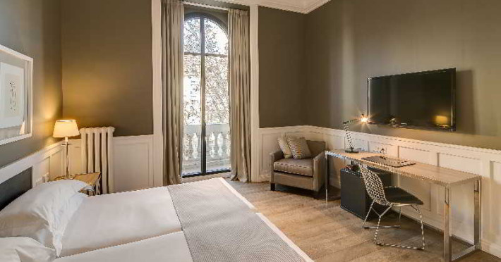 Built in 1870 as a commission for the Serra-Chopitea family, the building was converted into a hotel in 1935. Today it still stores countless pieces and works of art from the 19th century, making it at once a distinguished, elegant and unique hotel. The Hotel has 53 rooms, each one unique, and all fit with the finest architectural details, a TV and reading room, ADSL in the Business center, a terrace garden of 500m2 and public parking just 20m away. The hotel also invites you to host conferences and parties, in any one of its 3 conference rooms..The hotel is strategically located in the heart of the city, beside Plaça Catalunya and Paseo de Gracia, and rather near to some of Barcelonas most beloved landmarks, including la Pedrera, Casa Battlló, Palau Robert, Casa Fargas and Casa Ametller. Near there are a wide variety of shops, restaurants and bars. And with public transportation can easily reach the Fira Barcelona..The comfortable rooms come with an en suite bathroom with hairdryer, a direct dial telephone, satellite/ cable TV, Internet access, a minibar/ fridge, a king-sized bed, central heating, air conditioning and a hire safe.