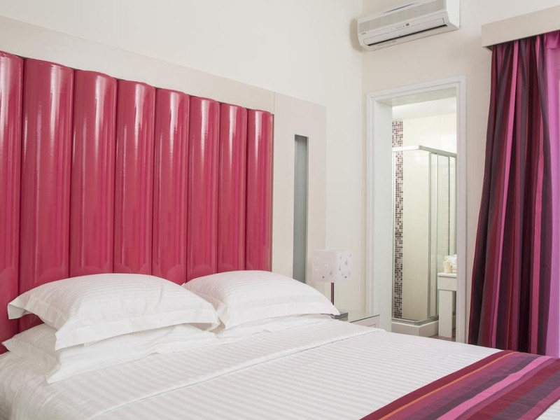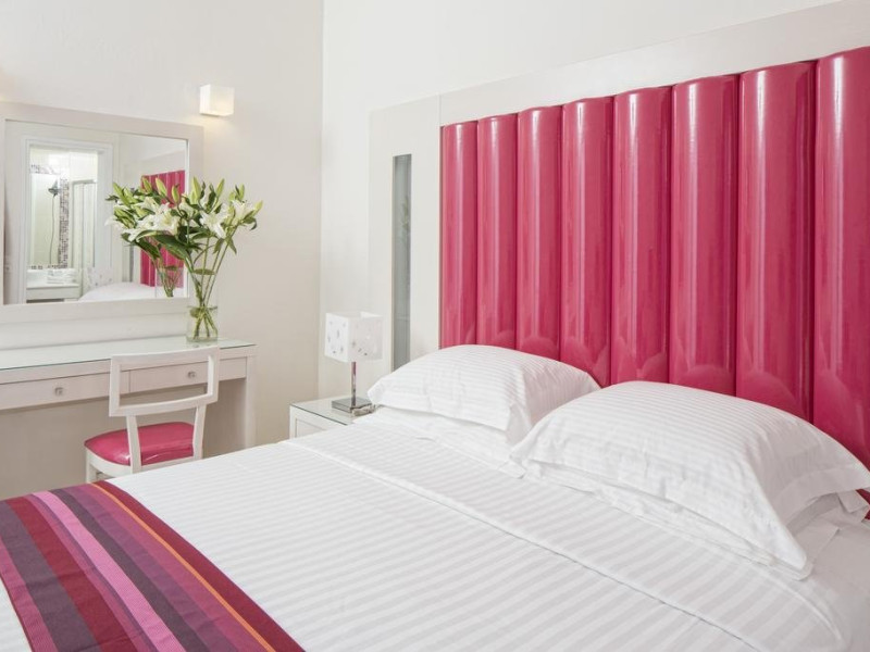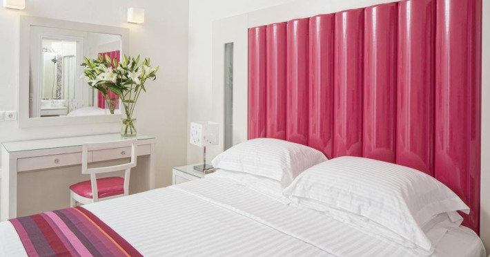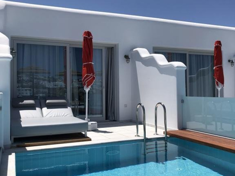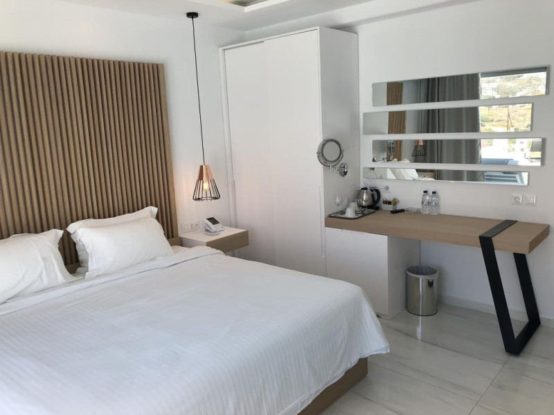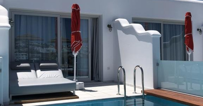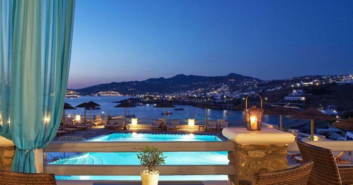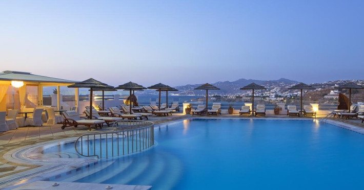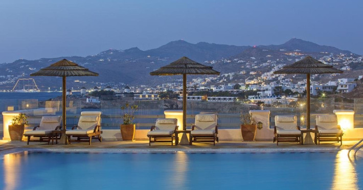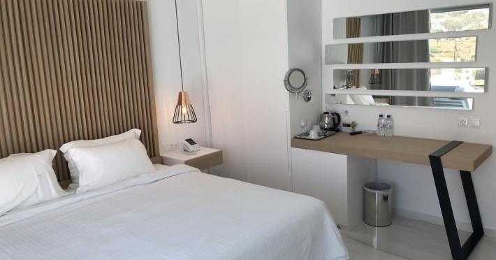Descriere: Un resort elegant cu o localizare ideala, pe plaja de nisip Megali Ammos, oferind o vedere superba spre Marea Egee si celebrele mori de vant din orasul Mykonos. Localizare: pe plaja cu nisip din Megali Ammos, Grand Beach se afla la doar 400 de metri de animatul oras Mykonos. Dotari camere: Camerele sunt decorate modern si sunt dotate cu televizor, seif, frigider, uscator de par, aer conditionat,acces internet Wi-Fi, Facilitati hotel: Facilitatile de la Grand Bay include un salon de mic dejun, piscina cu apa de mare, piscina pentru copii, Jacuzzi in aer liber, bar la piscina, centru fitness, colt internt, parcare. Tip masa: mic dejun si optional demipensiune Clasificarea oficiala: 4* Web site: www.grandbeachmykonos.com