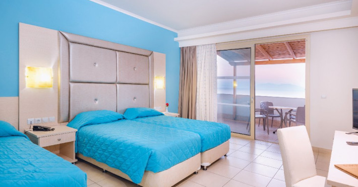 DESCRIERE: Cu doua piscine in aer liber, Grand Blue Beach Hotel ofera cazare in Kardamaina, la 28 km de Kos.