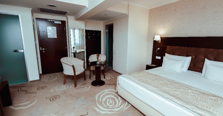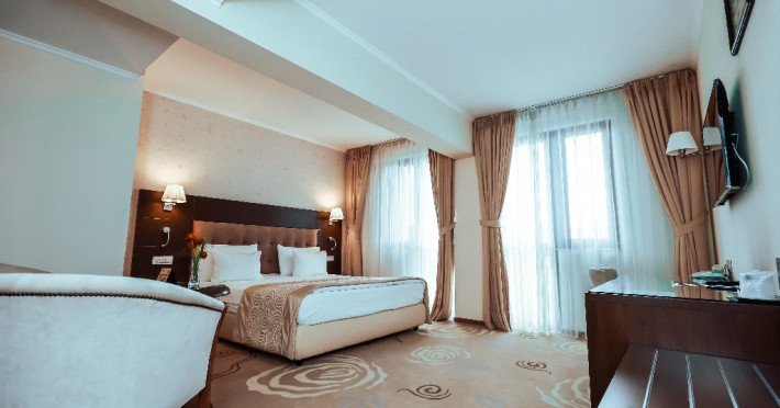 DESCRIERE CAMERE Camerele si apartamentele hotelului ofera acces gratuit la internet WiFi si TV. Toate camerele au baie privata, unele cu cada, altele cu dus cu hidromasaj. Tipuri de camera: 4 stele standard: camera dubla twin, camera single, camera dubla matrimoniala. 4 stele premium: camera dubla twin, camera dubla matrimoniala, camera family, apartament.