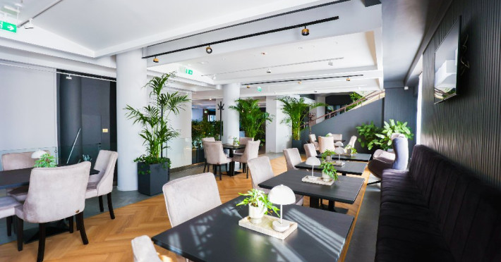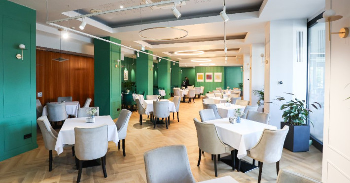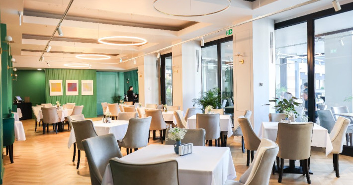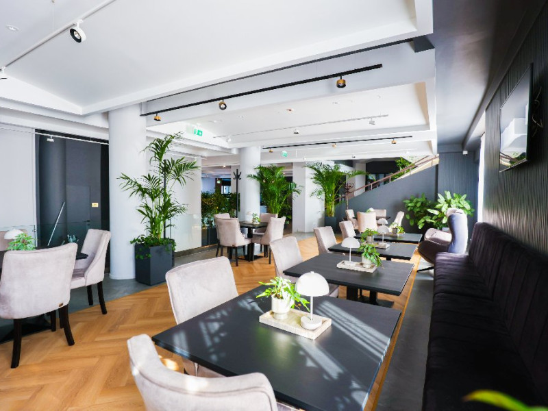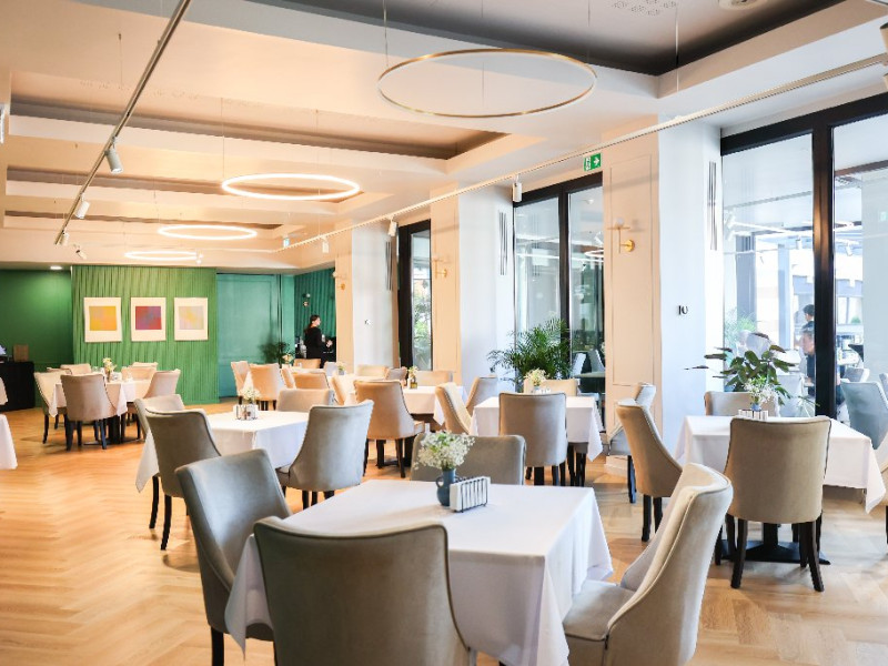 SERVICII DE MASA Restaurantul cu o capacitate de 250 de locuri va ofera atat cafeaua de dimineata, pranzuri de afaceri dar si cine romantice. Meniul restaurantului este diversificat cu preparate reinterpretate.